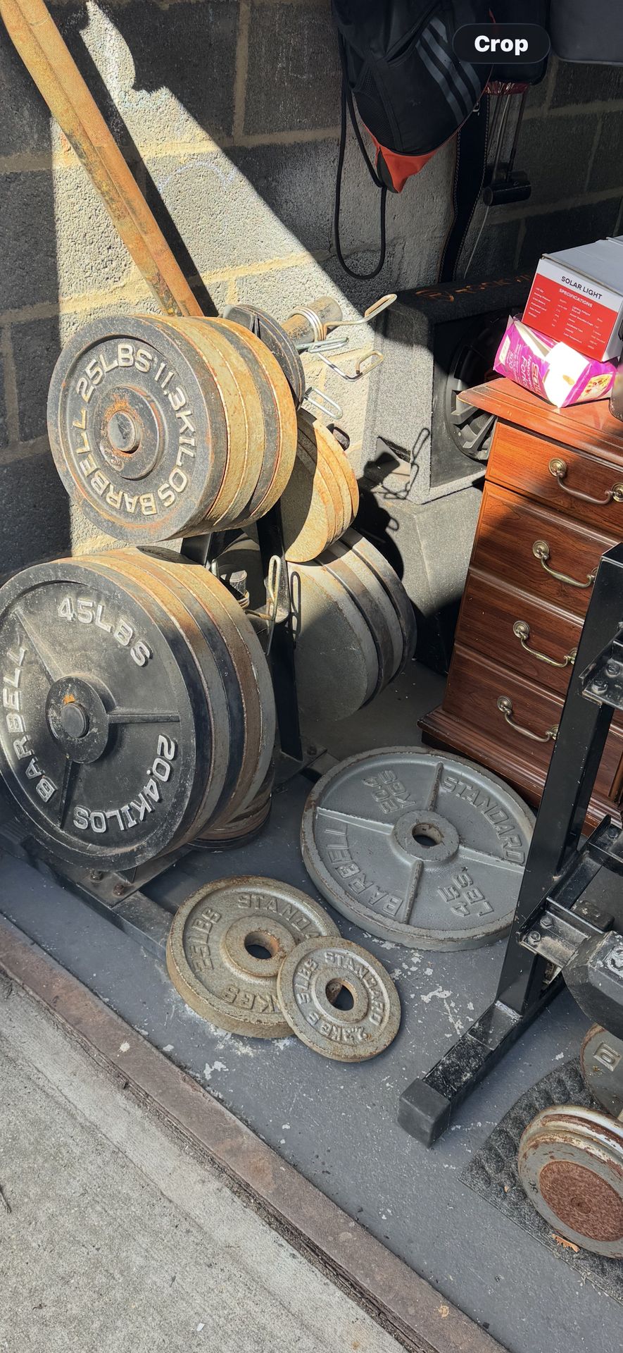6-45 lb plates 4-35 lb plates 6-25 lb plates 4-20lb plates 10-5 lb plates