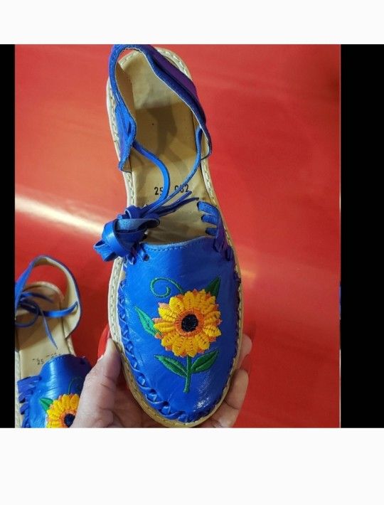 *Handmade in Mexico *All leather *Sandal will stretch with normal wear *Please be advised that these shoes are handmade and will have blemishes No half sizes available, if you are a half size get the whole size. Cross posted Size, 6, 7 or 8