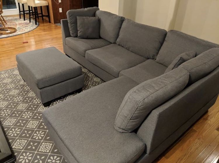 Brand New Grey Sectional Sofa Couch With Ottoman