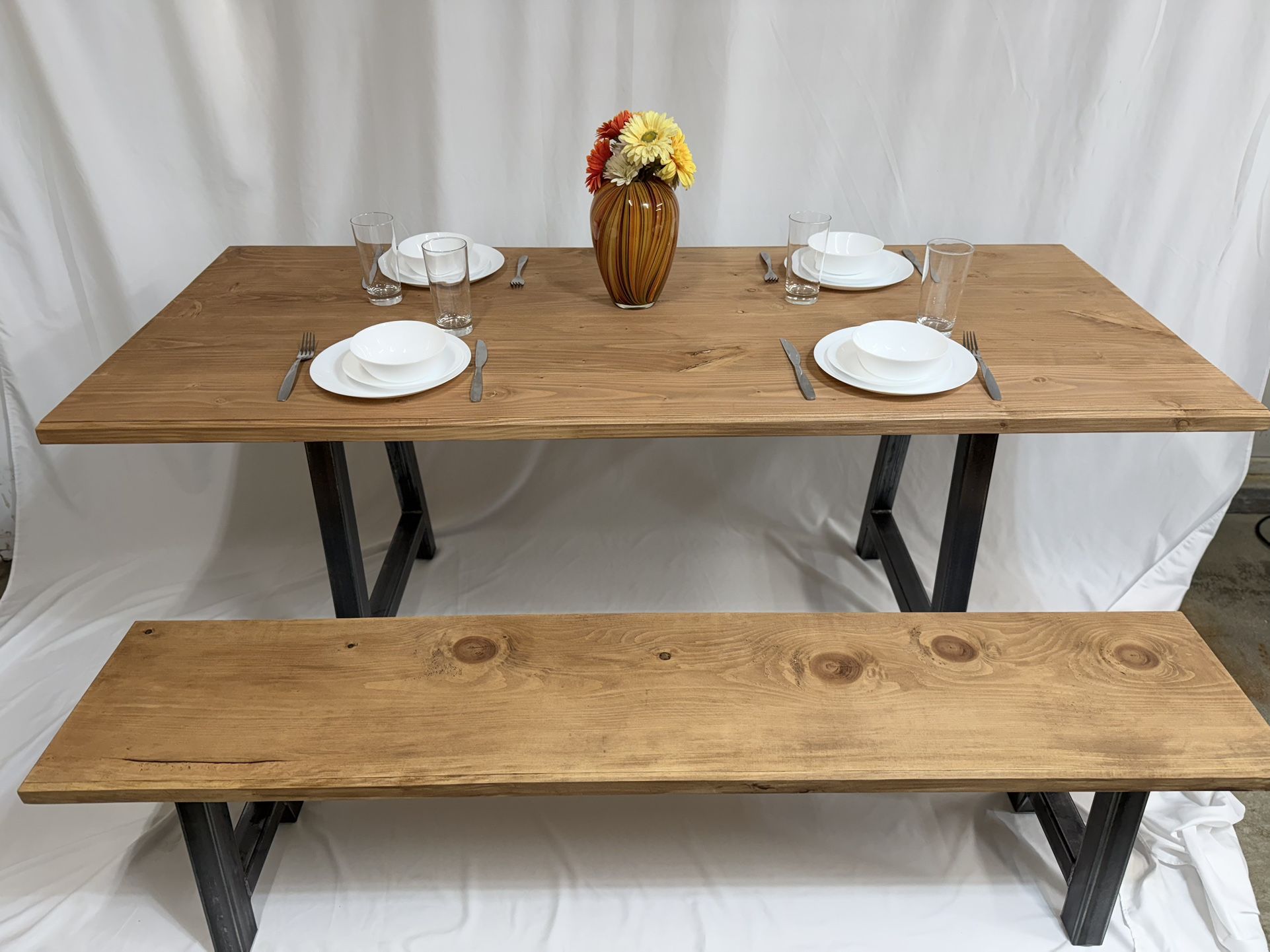Custom made Farm Style Dining Table w/Bench Seat. Table is approximately 60 in by 30 in