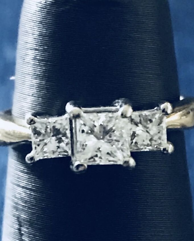 One Carat t.w. 3 Stones Natural Princess Cut Diamond Ring, 14K Two Tones, Price is Firm, No Offers Please!
