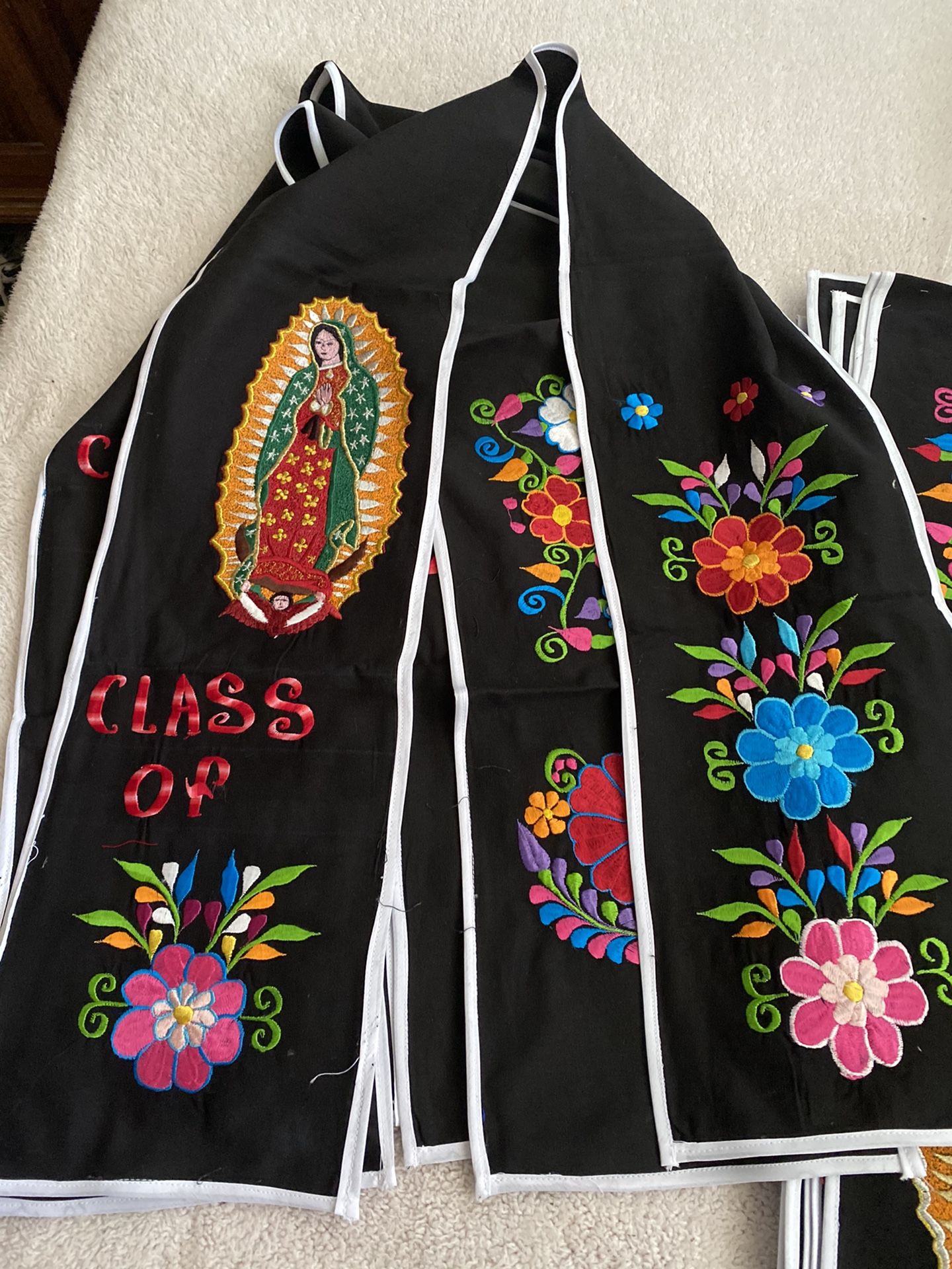 Estolas de Graduacion ya traen class 2021 - estamos a tiempo de personalizarlas por $5 más de su precio, cada una tiene diferentes precios ya que hay unas bordadas a mano, pero las de Zarape $25 con class 2025. graduation sash custom