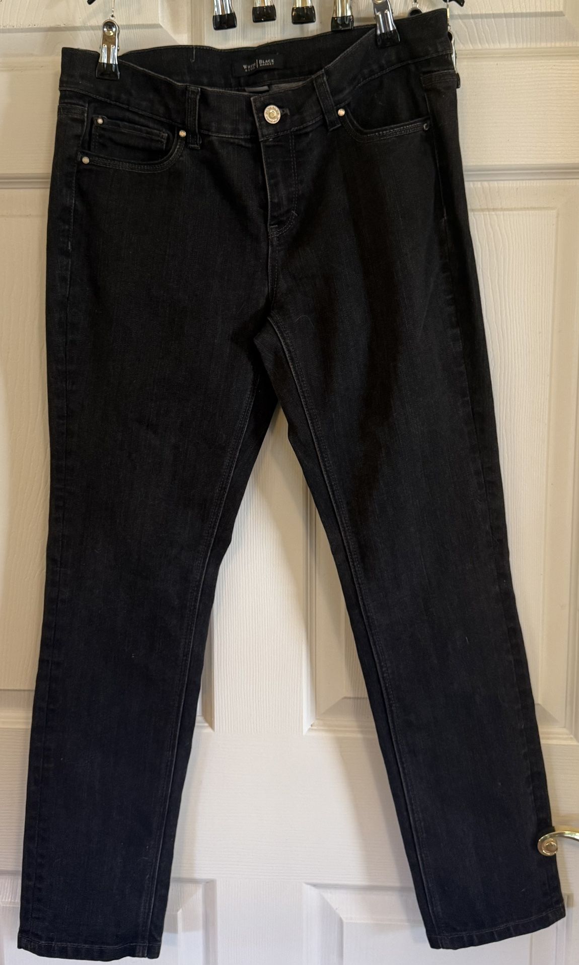 Black WHBM slim-leg jeans, women's size 6S. Stretchy, comfortable, and stylish with detailed back pockets. Inseam 27", waist 15.5" flat. Clean and in great shape. PPU in Landenberg Cash only Cross posted