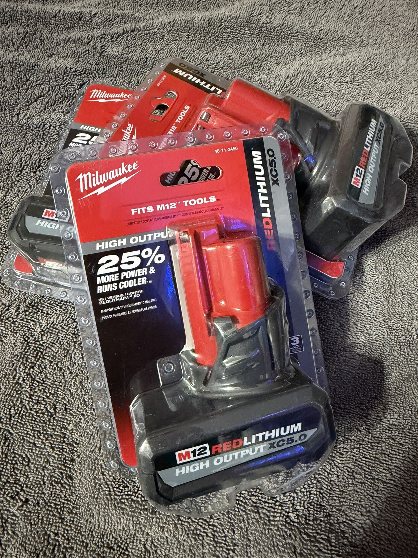 Milwaukee M12 12-Volt Lithium-Ion XC High Output 5.0 Ah Battery Pack ($75 Each)