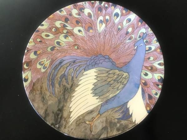 Vintage J. P. L. (Jean Pouyat Limoges) France beautiful hand painted iridescent plate of a a peacock with full plumage. Porcelain Iridescent Peacock Plate. Tried to photo the iridescence of the plate in the second phot but doesn't photo well. Marked J P L France on the back, this plate is in excellent condition. JPL went out of business in 1932. Size is 9" diameter