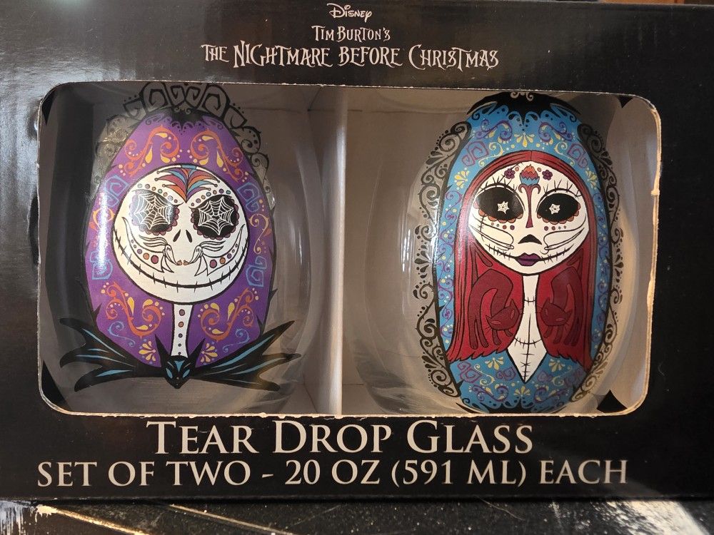 Brand new never out of box 20 oz Jack and Sally wine glasses