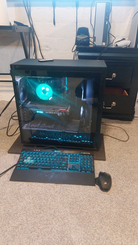 Specs: Graphics Card: EVGA RTX 3060 ΤΙ Processor: Ryzen 7 3700X Motherboard: MSI MPG X570 GAMING EDGE Wi-Fi RAM: 4x8 GB (32 GB) Corsair Vengeance Memory: 2x1TB Western Digital Black SN750 Case: NZXT H710i Fans: 3x NZXT 120mm fans (intake) 2x NZXT 140mm fans (exhaust) PSU: CORSAIR CX750M 80+ Bronze OS: Windows 11 Keyboard: Corsair K70 RGB MK.2 mechanical gaming keyboard Mouse: Corsair Dark Core RGB Pro SE wireless Asking $900 Cash only willing to negotiate