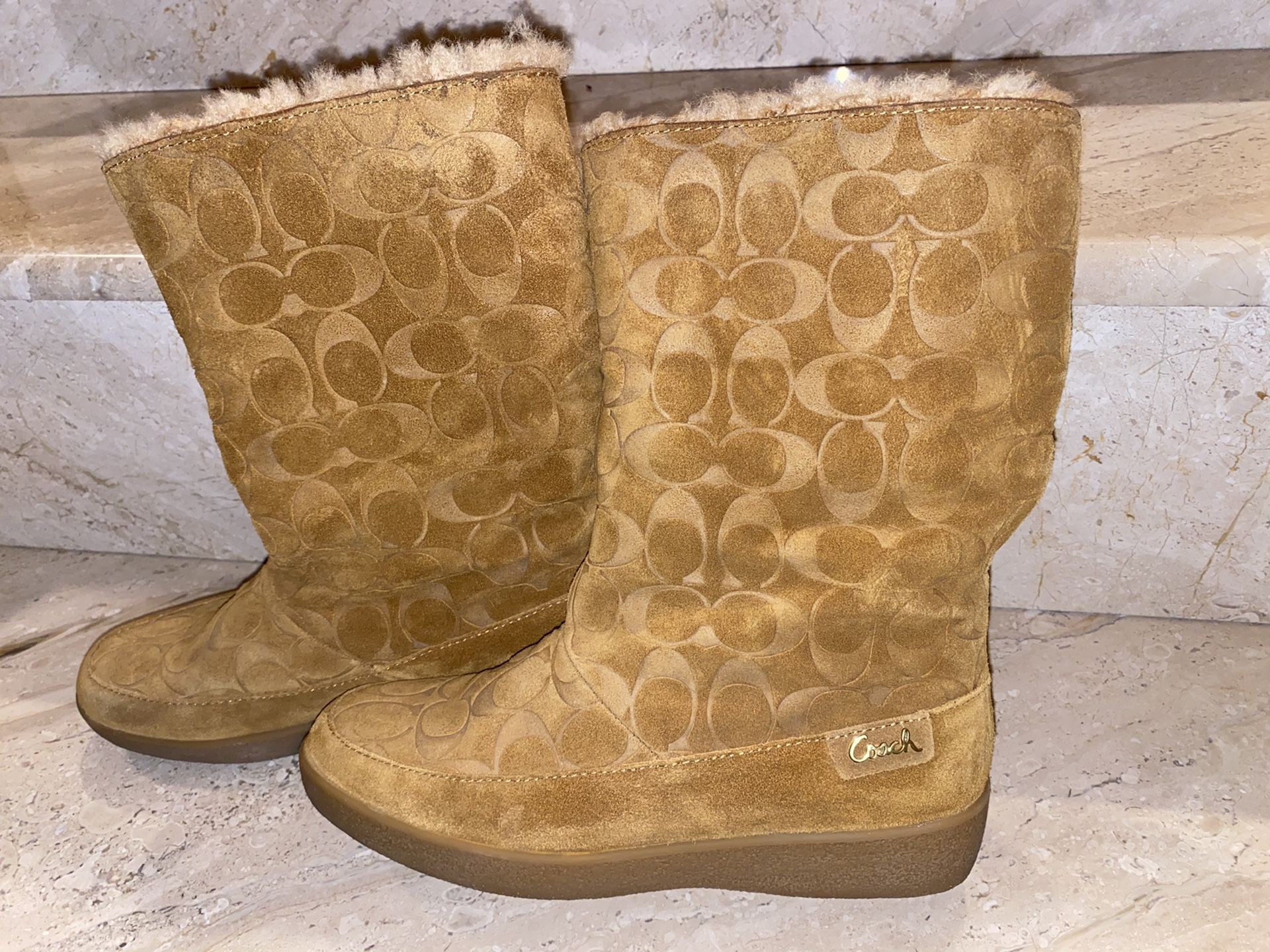 Coach Women’s Suede Chestnut fur boots Barely worn Size 7 1/2