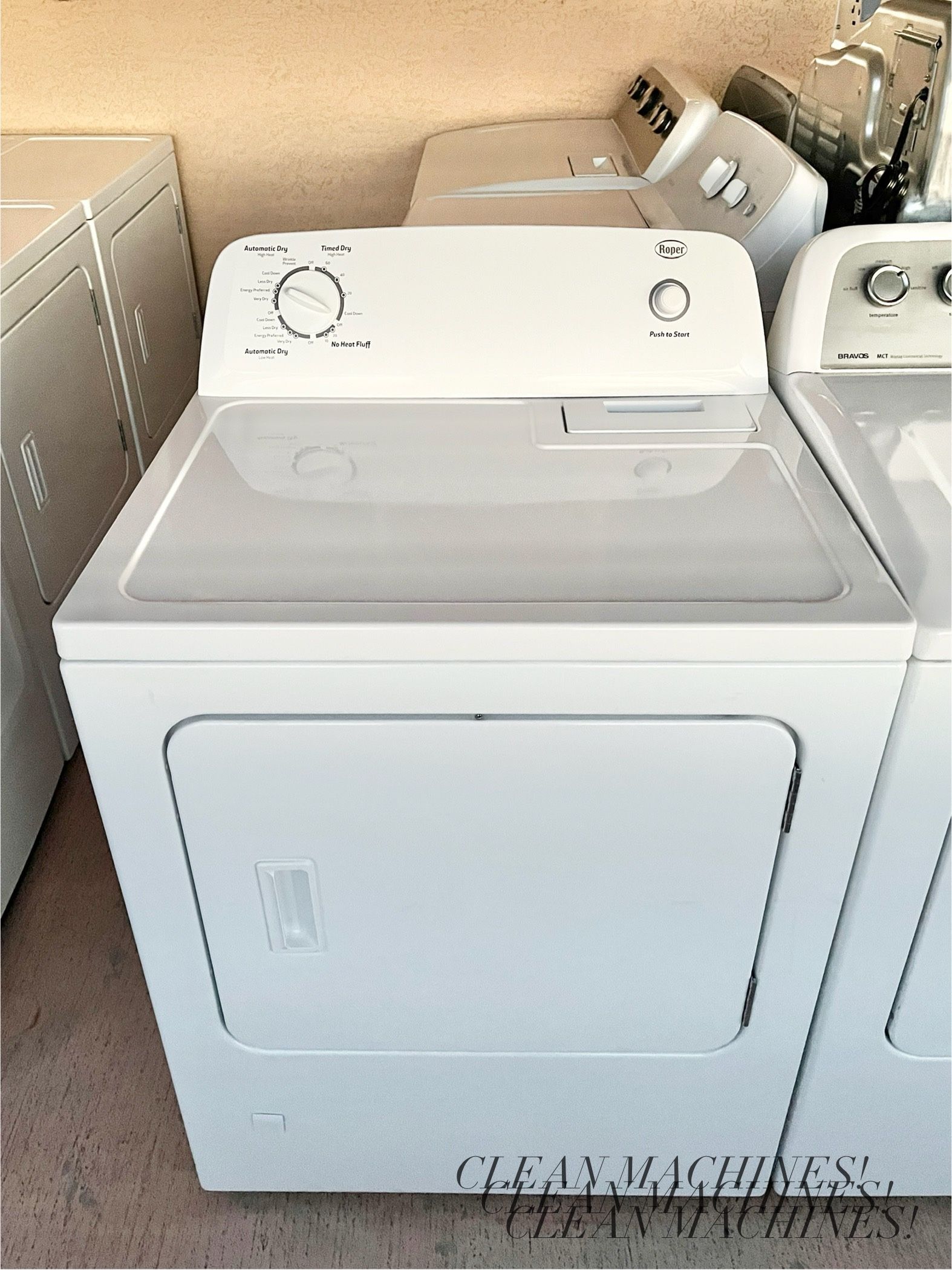 CLEAN MACHINES! Roper gas dryer. Super capacity, wrinkle prevent. Completely serviced in good condition and works great. Clean from the inside out. Brought back as close to new as possible. 90 day warranty and ask about delivery. Many dryers available. Capacity: 7.0 cubic feet Width: 29 Depth: 29 Height: 43
