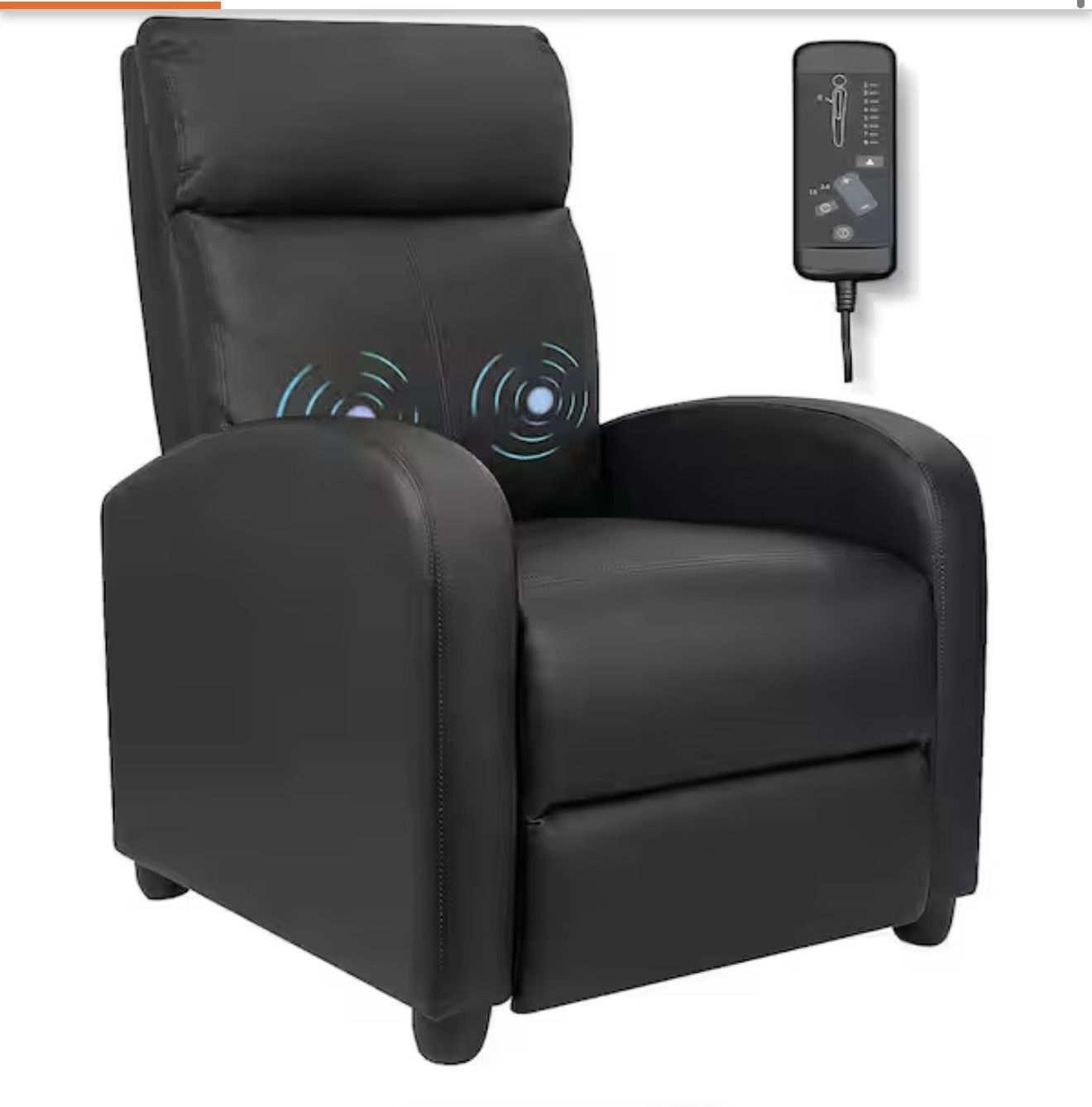 Brand mew in its own open box never used Can be delivered within 10 miles for extra charges Black Leather Standard (No Motion) Recliner This recliner can be used as three kinds of shape from 90 to 180 degree. High quality PU leather, comfortable skin friendly and easily cleaned. Seat dimensions: 19.7"W x 22.1"D Back dimensions: 20.9"W x 29.1"H Package dimensions: 30.7"L x 27"W x 20.6"H; Weight: 60 LBS Easily assembly required