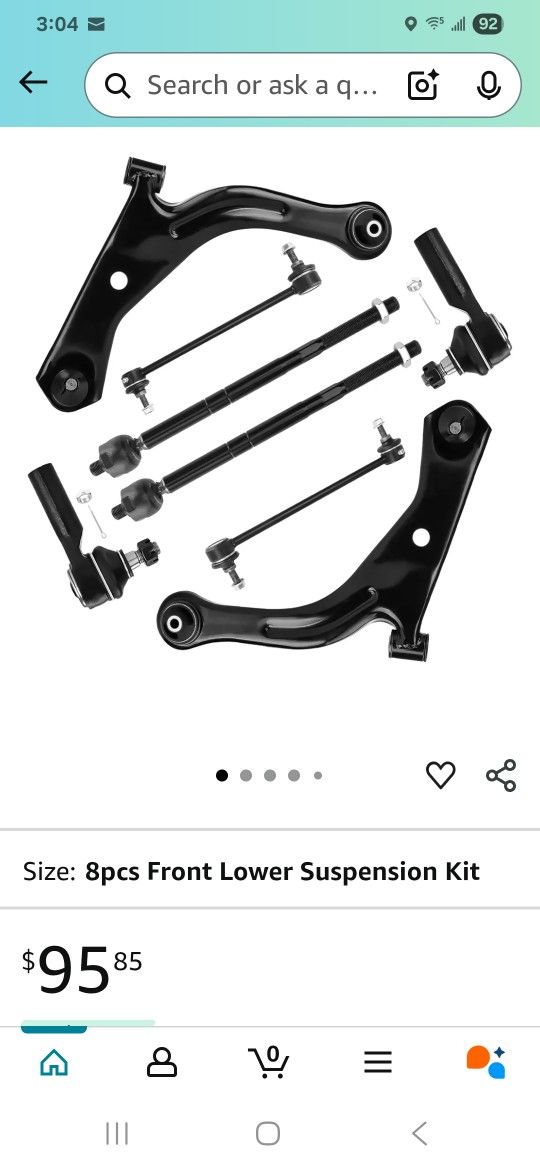 Lower Control Arms w/ Ball Joint (Left) +1* Front Lower Control Arms w/ Ball Joint (Right) +2* Front Sway Bar End Link +2* Front Inner Tie Rod End Link +2* Front Outer Tie Rod End Part number come back for patriot journey