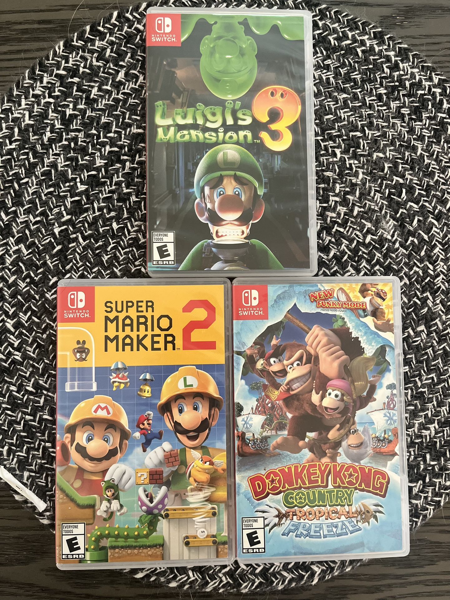 Luigi’s mansion 3 Mario maker 2 Donkey Kong country tropical freeze 1 for $39 2 for $75 3 for $110