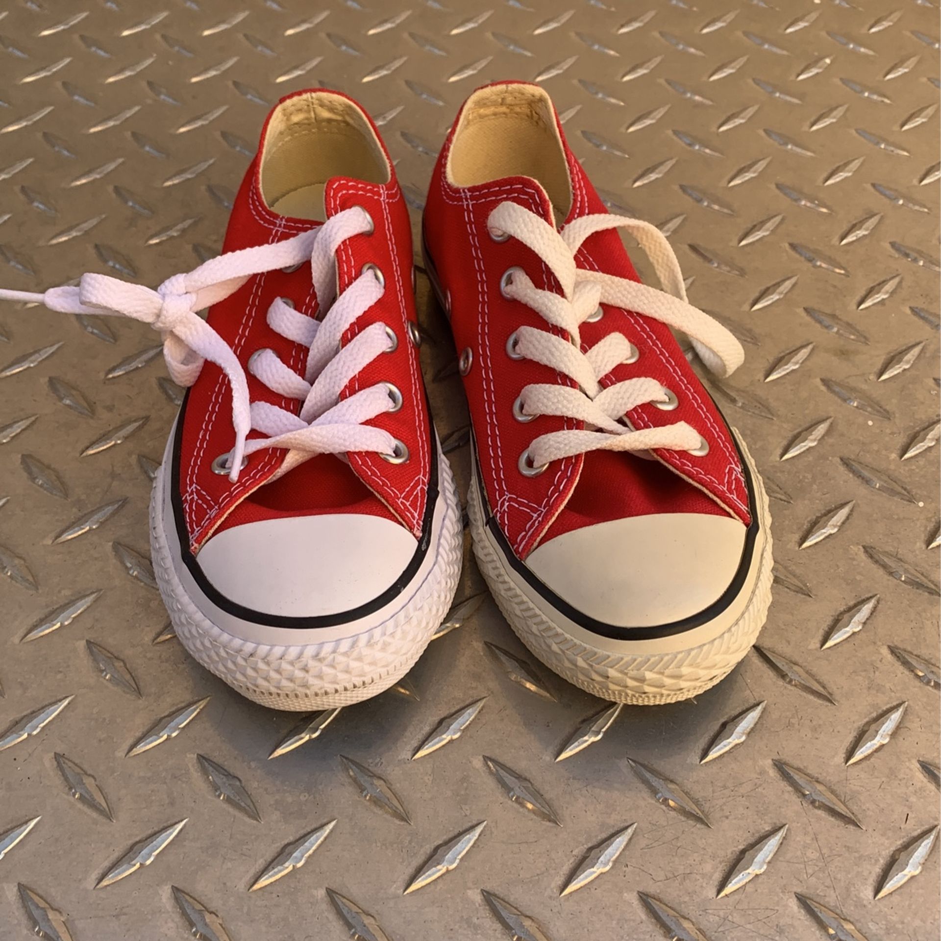Never used size 12 c converse. Left shoe discolored from display. Good play shoes.