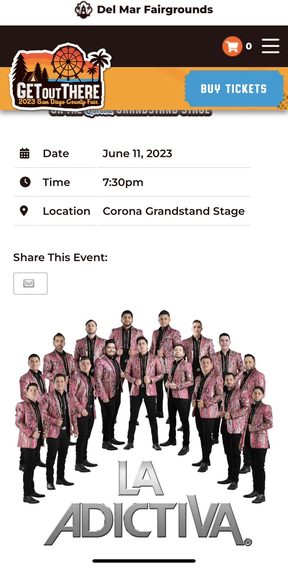 Today! La Adictiva at Del Mar Fair Table for 4. Table service during the whole concert 4 tickets available $200