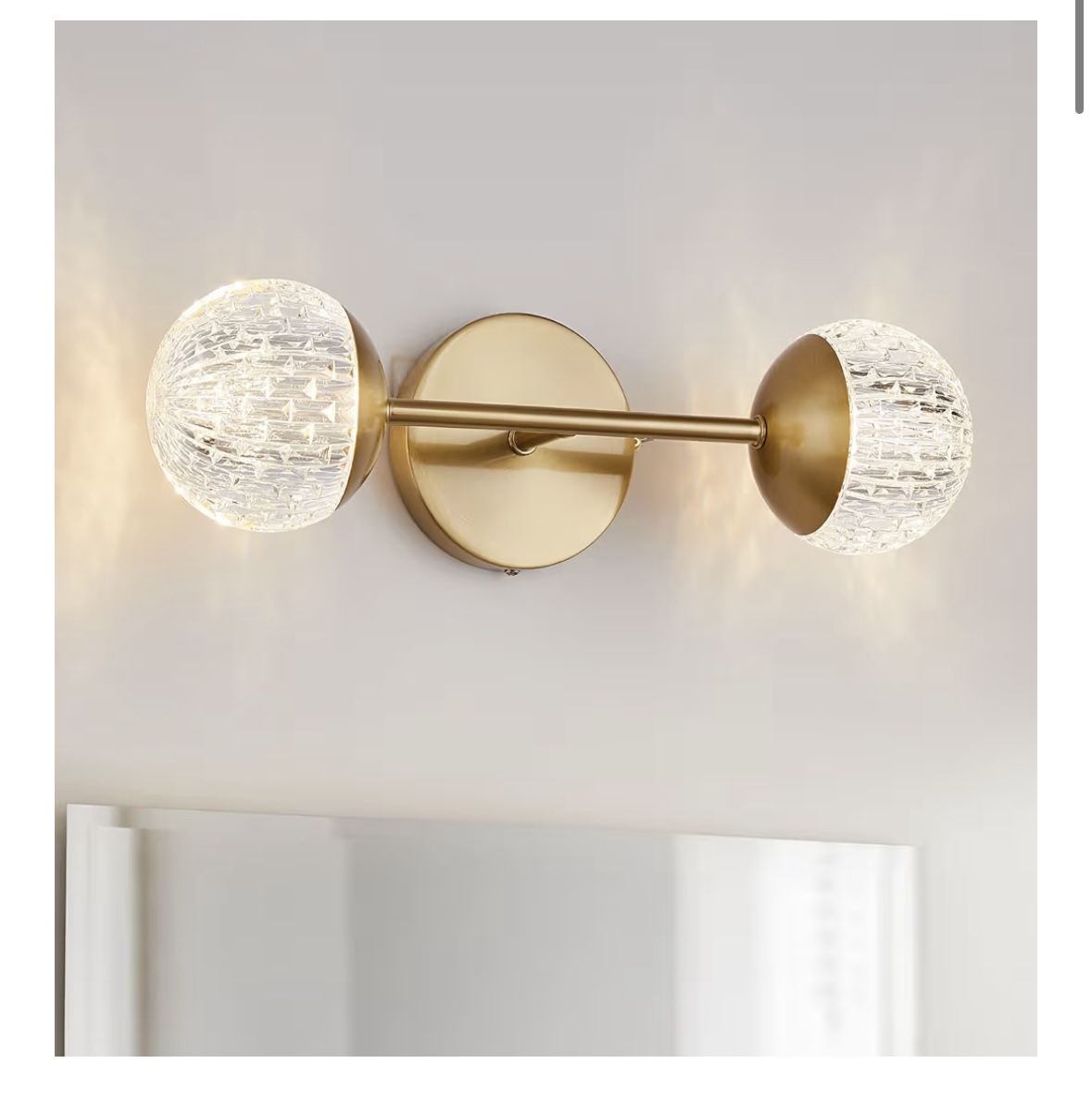 Like new! Brand phemlec Color 02-Brass Control Method Touch Lighting Method LED Bulb Base GX5.3 Controller Type Push Button UNIQUE DESIGN - Crafted with brass finish and acrylic diamond sphere lampshade, this LED bathroom vanity light boasts anti-rust and anti-oxidation properties. Its light and transparent design, coupled with modern and simple style, emiting soft light, enhancing your living experience with comfort and elegance. Dimmable 2 Color Lights - This LED bathroom vanity light has 2 light color options: natural white/warm white (3000K, 4500K) to meet your needs. Only 8W but gives off great lighting brightness more than ordinary 120W bulbs. In addition, use with a dimmer switch can be dimmed, note: dimmer switch is on the right side of the plate. LED technology saves up to 80% electricity compared to traditional light bulbs and boasts a lifespan of up to 50,000 hours.
