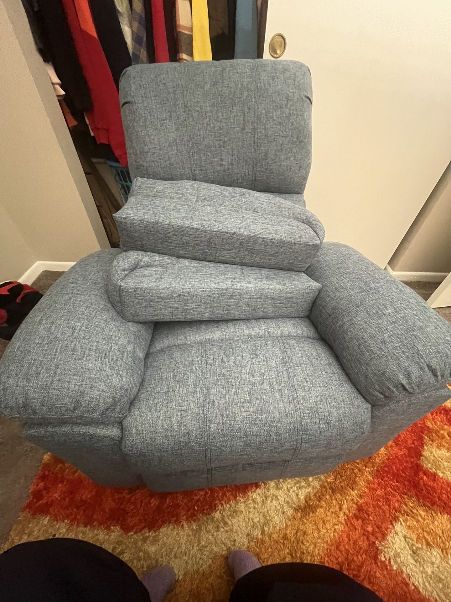 Barely used recliner Brand: Christopher Knight - pillow tufted Dimensions 36.00" W x 38.50" D x 40.50" H and opens up to 36.00" W x 64.50" D x 32.25" H.