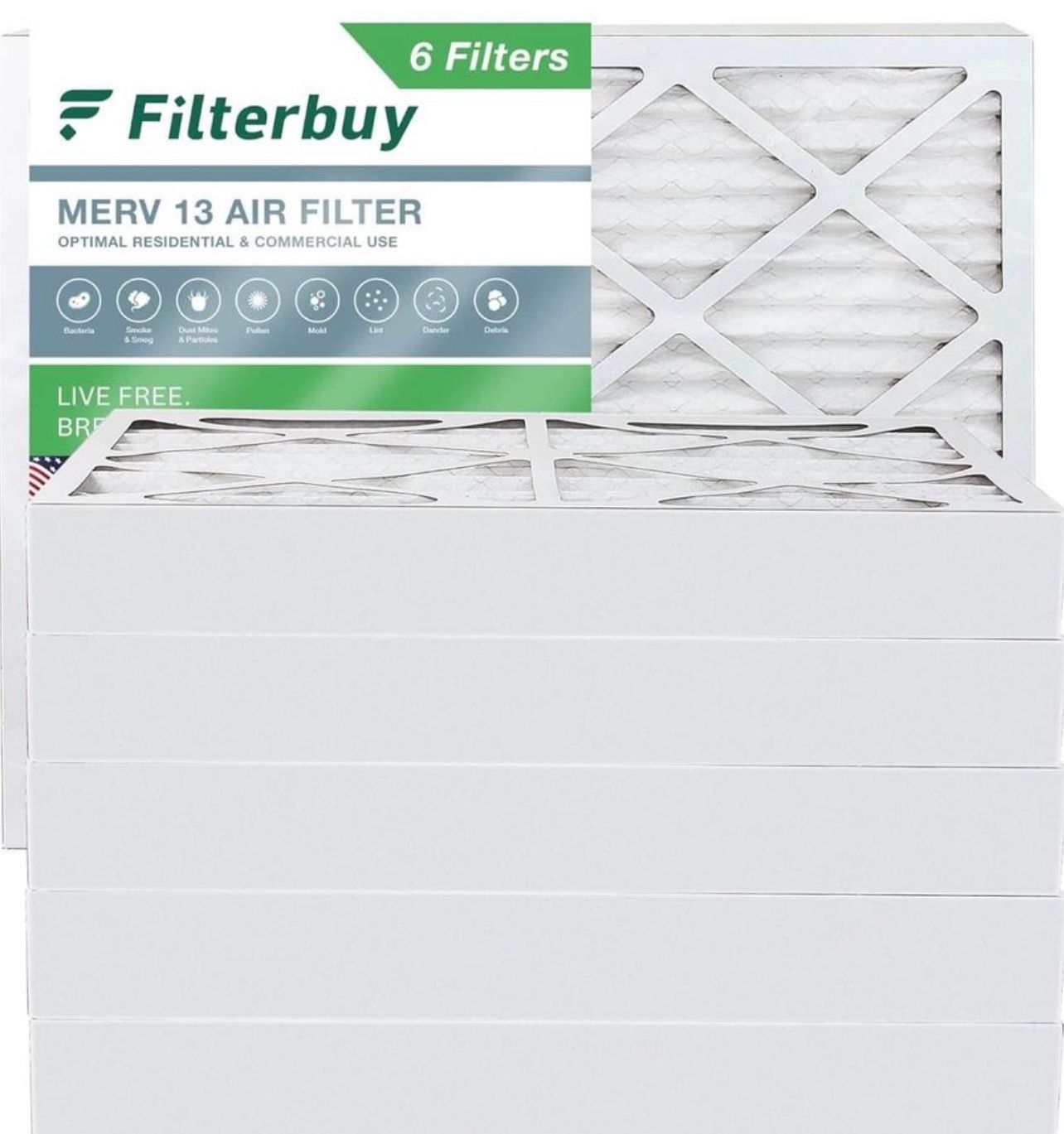Filterbuy 20x25x4 Air Filter MERV 13 Optimal Defense (6-Pack), Pleated HVAC AC Furnace Air Filters