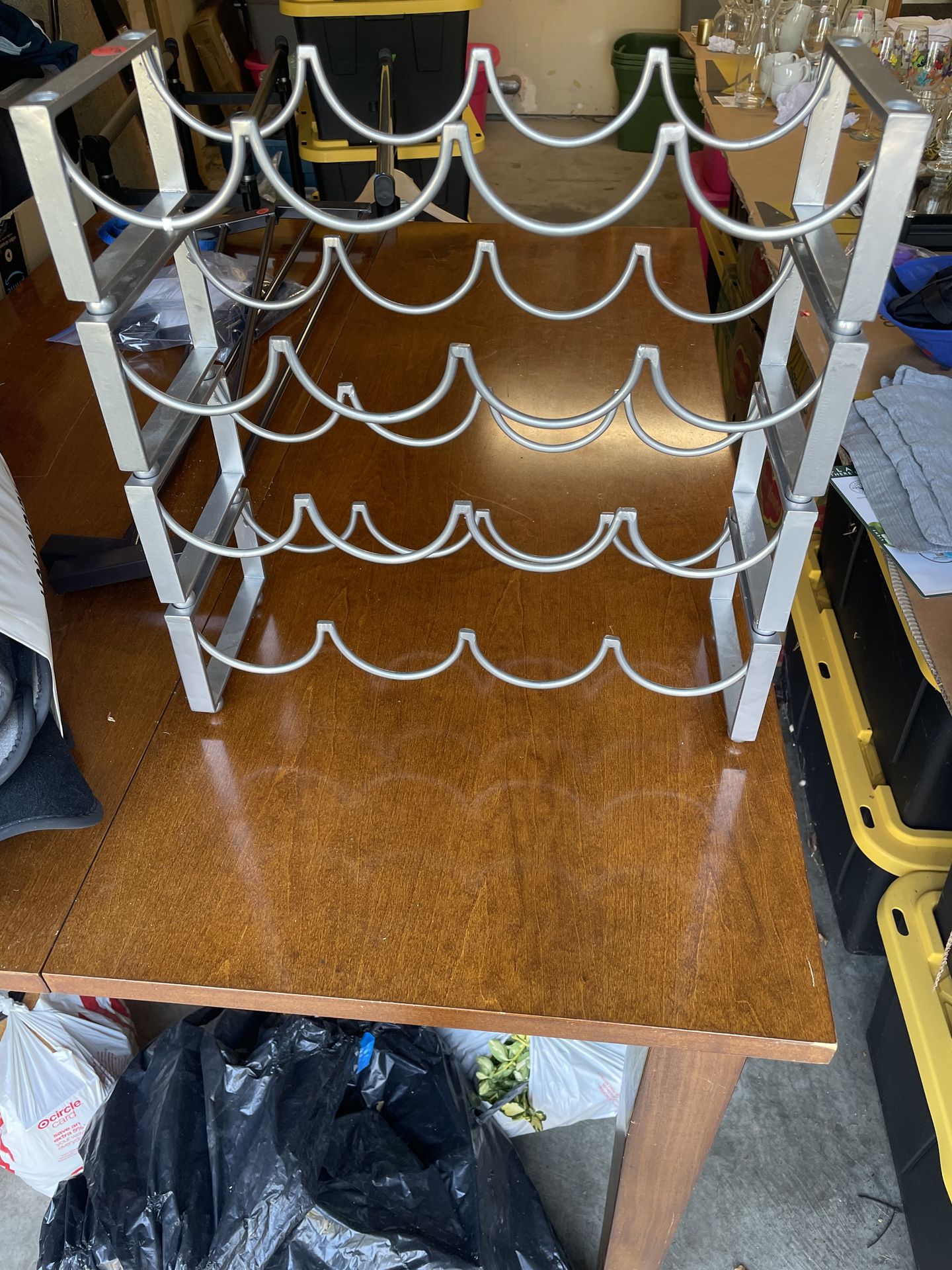 Wine rack 4 stackable pieces or can be layed in single layers. Very sturdy Ppu Covington Cash only