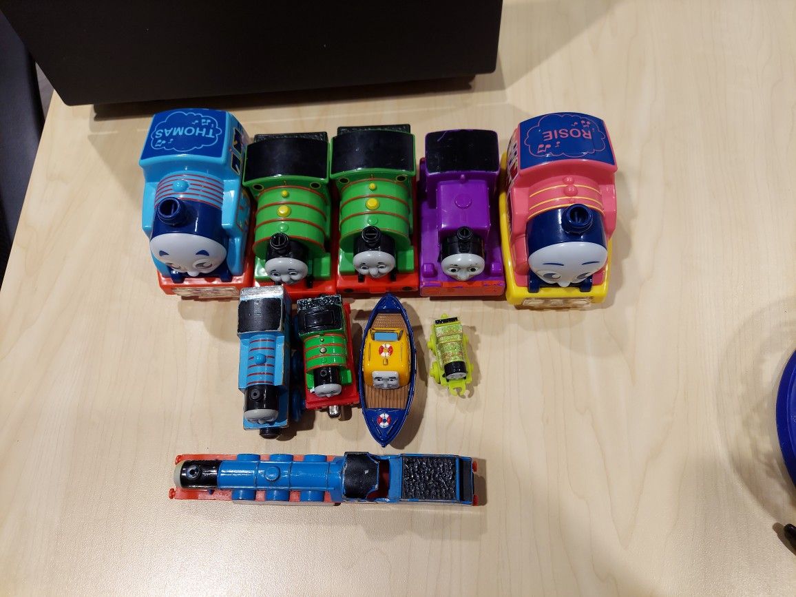 Lot of 10 thomas trains 1. 2 push back percy's they both work perfectly 2. Interactive thomas and rosie both working 3. Pude along Charlie 4. Wooden magnetic thomas 5.talking diecast percy working 6.captain 7. Mini snake henry 8.vintange #4 Gordon $50 OBO
