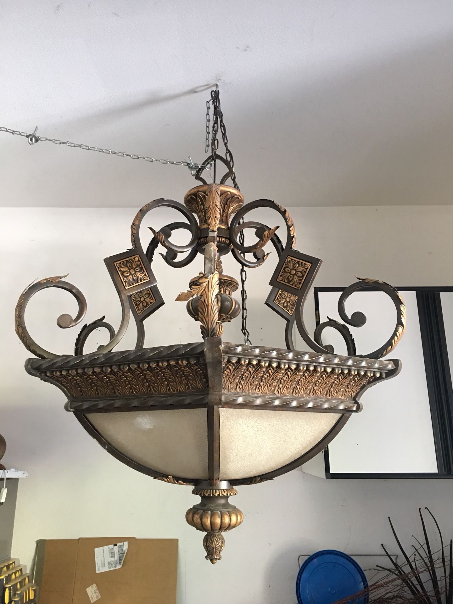 I have this beautiful chandelier for sale. It’s 38” wide, 52” from the top of the chandelier to the bottom(excluding chain links) Nothing wrong with it, just making more room in the garage.