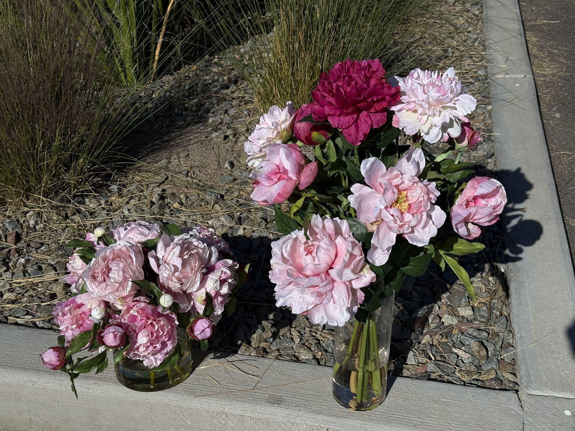 Like New Condition Glass Vases with Faux Flowers from Pottery Barn. Vases are glass and filled with acrylic. Tall Vase Dimensions (without flowers): 10"h x 4"w and the short vase: 6"h x 5"w. Cost new from Pottery Barn is over $200 each new. CASH ONLY. Pick up near 32nd Street and Greenway in North Phx 85032