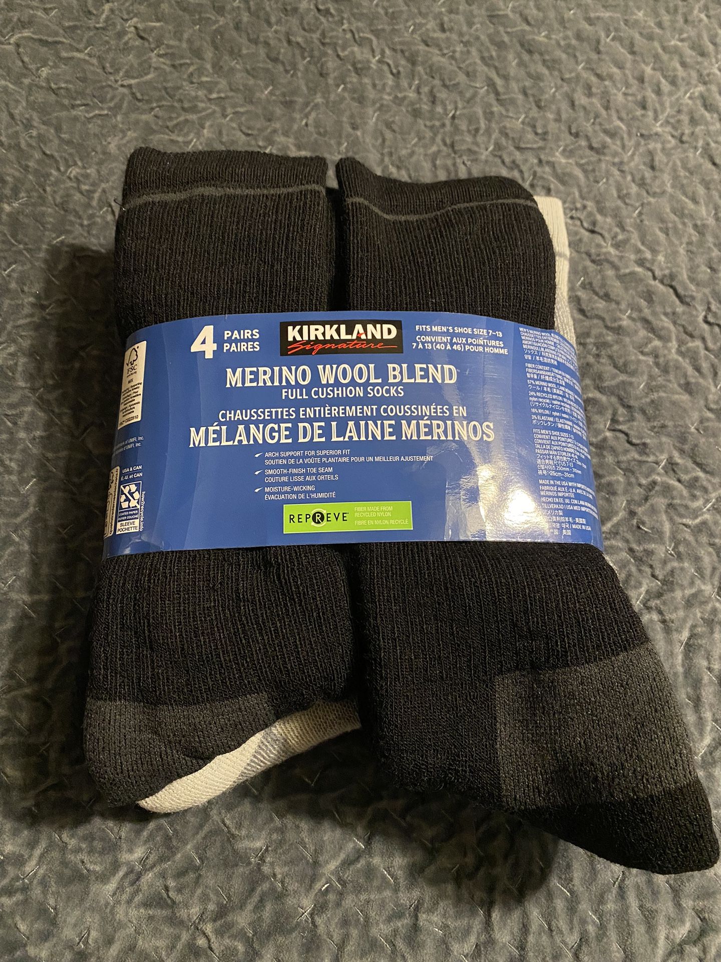 Fits men’s shoe size 7-13 57% Merino Wool, 24% Repreve Recycled Nylon, 16% Nylon, 3% Elastane 4 pairs Brand new Pick up in Lynnwood