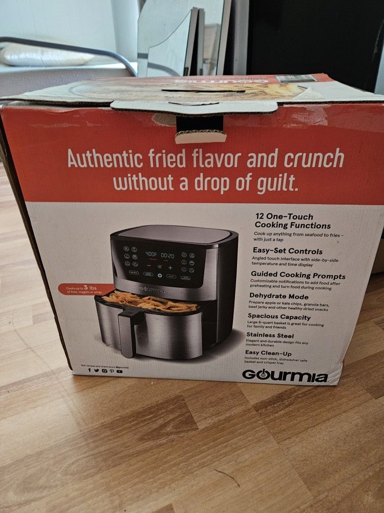 Not used a lot. Very clean inside and box available with recipe book 8qt easy to fit, a whole chicken bird Fry a batch of 2lbs fries. Or popcorn's OBO