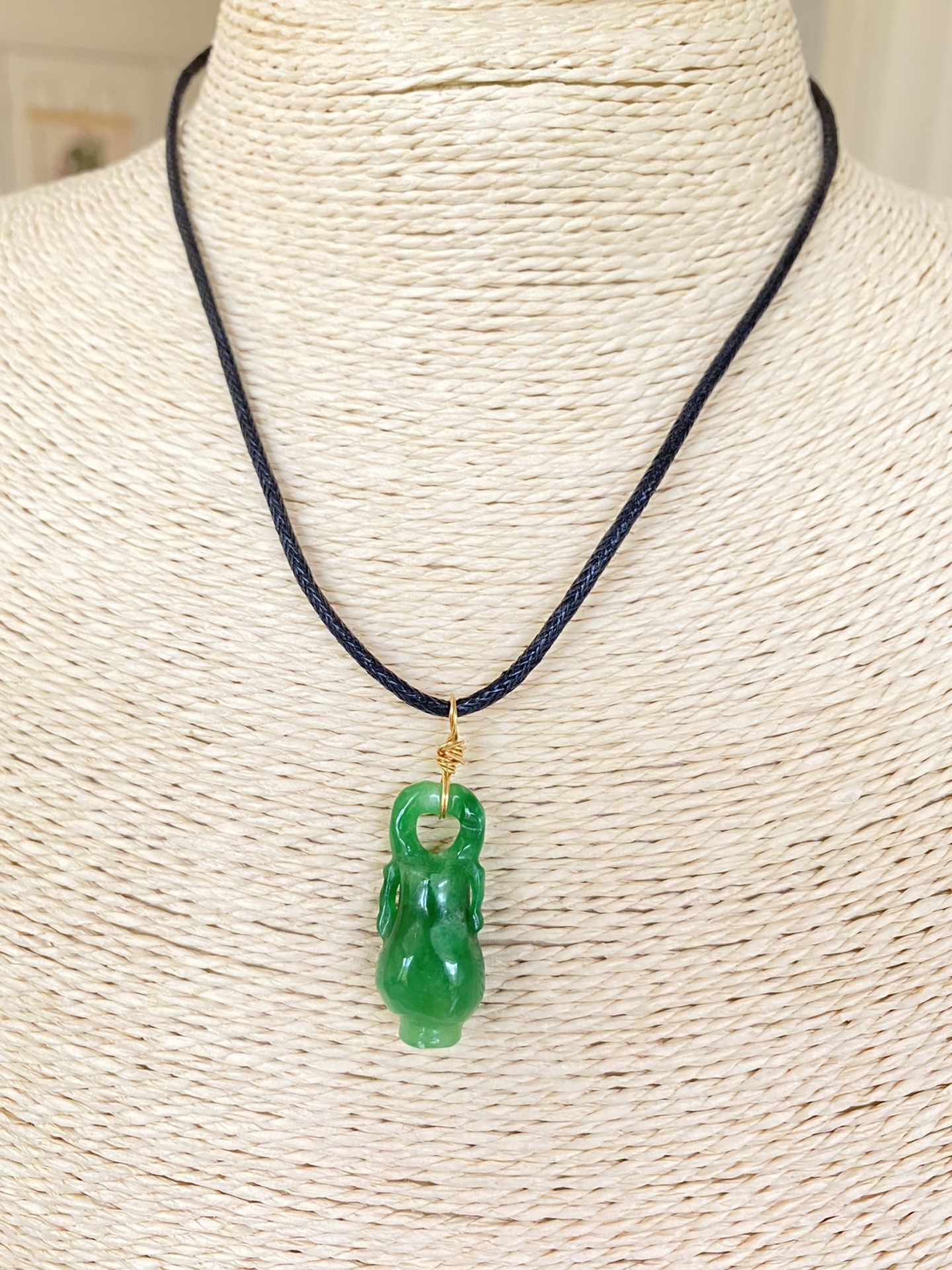 High-quality AA-grade pure natural jadeite. Hand-carved lucky pot. It is a symbol of luck and happiness. Unique pendant. Black silk rope necklace can be adjusted in size unisex necklaces y2k