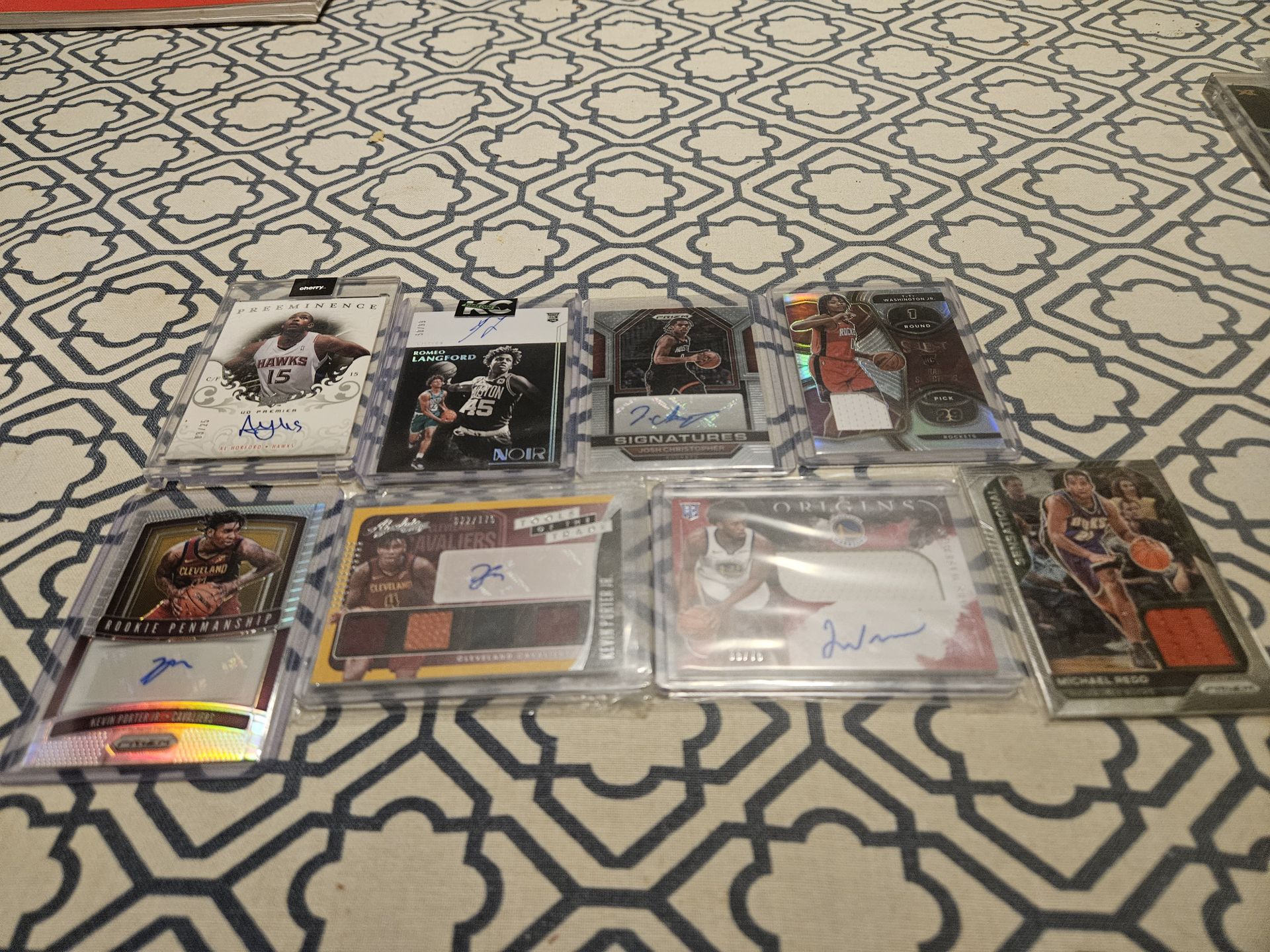 (8) cards for $80 rookie numbered jersey autographs. Kevin Porter Jr. Tools of the trade #22/175 Kevin Porter Jr. Rookie Pennmanship auto Romeo Langford NOIR autographed #50/99 James Wiseman RC Jersey Auto #35/75 Al Horford autographed #3/25 Tyty Washington RC Jersey Josh Christopher Autograph Michael Redd jersey