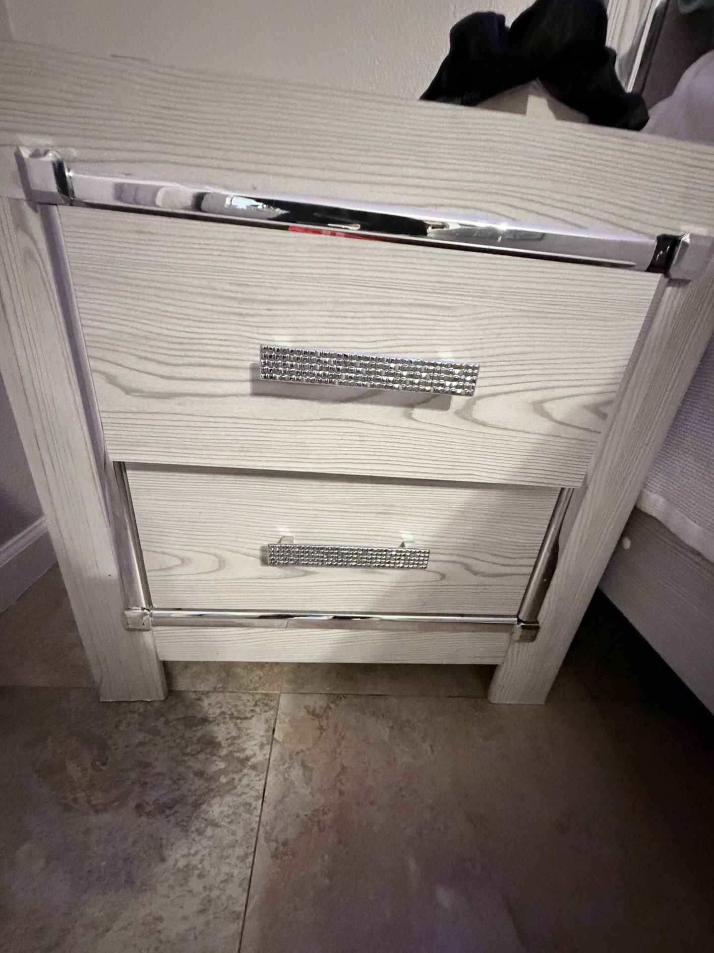 Includes : Head set Queen bed 1 night stand 1 dresser drawer Remote for lights Whole bed frame.