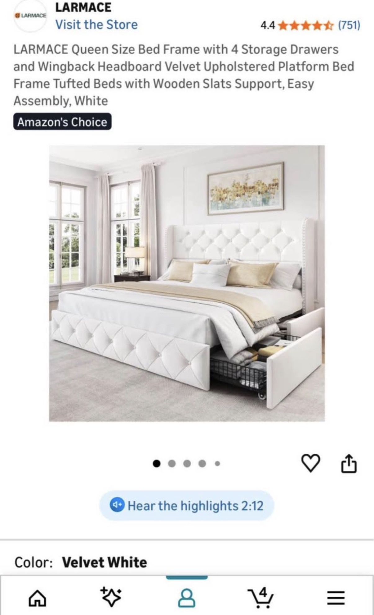 The BEST BED EVER! I spent over $550 on all of this less than a year ago but need to sell because im moving out if SD end of March. White velvet bedframe with no stains and in immaculate condition. Queen bedframe and matress PLEASE NOTE: this is only available for pickup between March 21 and 26th (anytime)! Pickup only, must disassemble yourself. On a 3rd story apartment complex but we have an elevator and dollies The sides of the bedframe are drawers for storage and are awesome for clothes, swimsuits, etc. I am only selling because I am moving and plan to buy the exact same one in a full size Everything was purchased in May 2025 and is less than 1 year old. Mattress included and was also bought new in May 2025 it is a 10 inch Zinus matress (has one small stain) I have a lot of interest in this so please only reach out if you can pickup and during the listed dates!