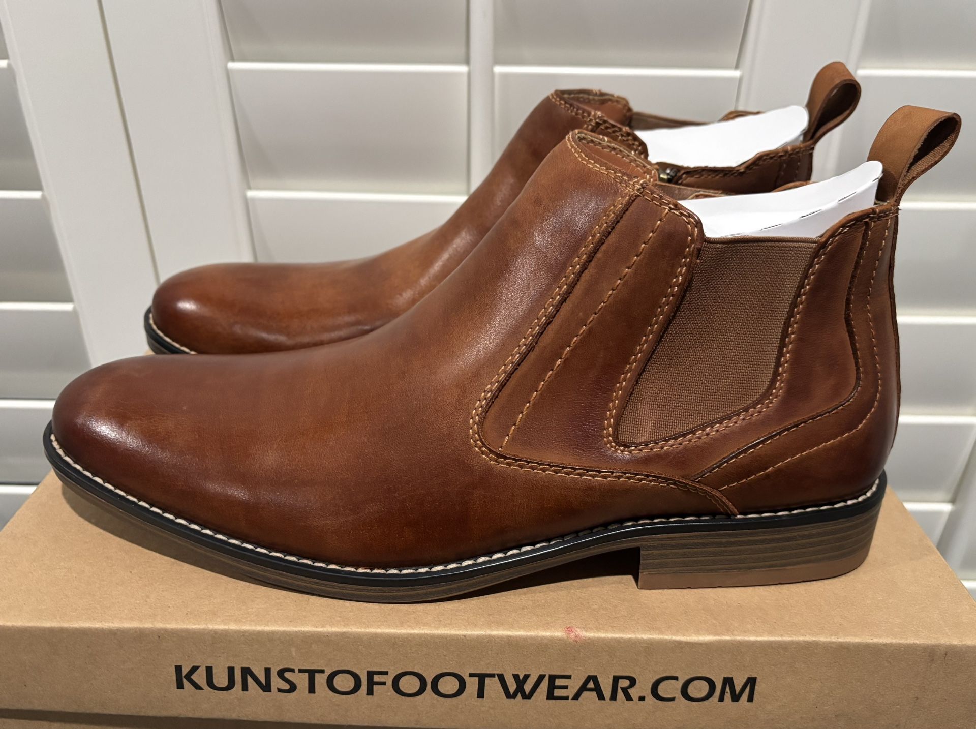 New Kunsto Genuine Leather Cognac Zip-Up Ankle Boots (Men's Size 12) - $45