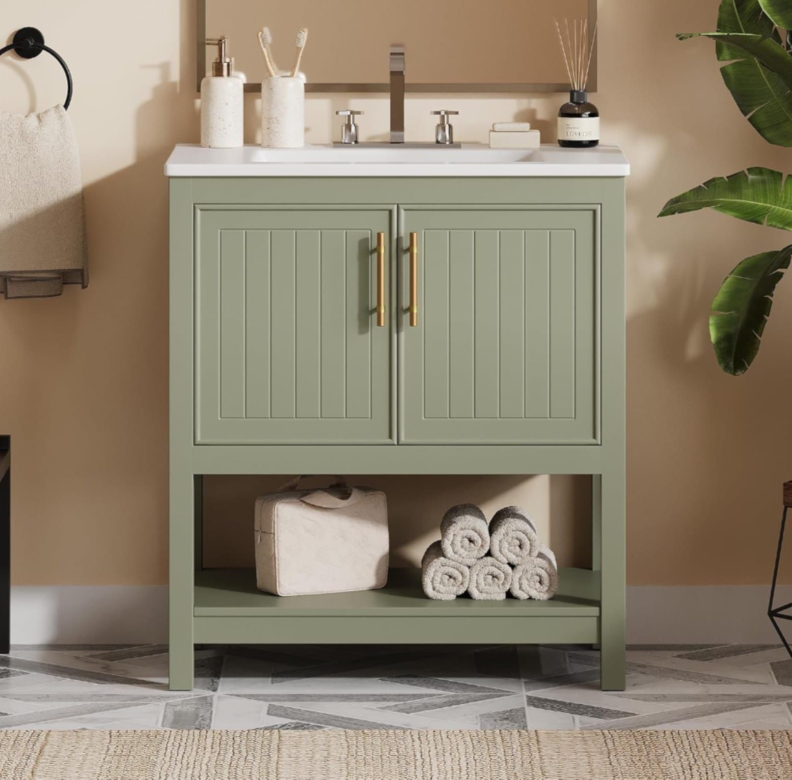 30" Light Green Bathroom Vanity w/ Ceramic Sink Freestanding