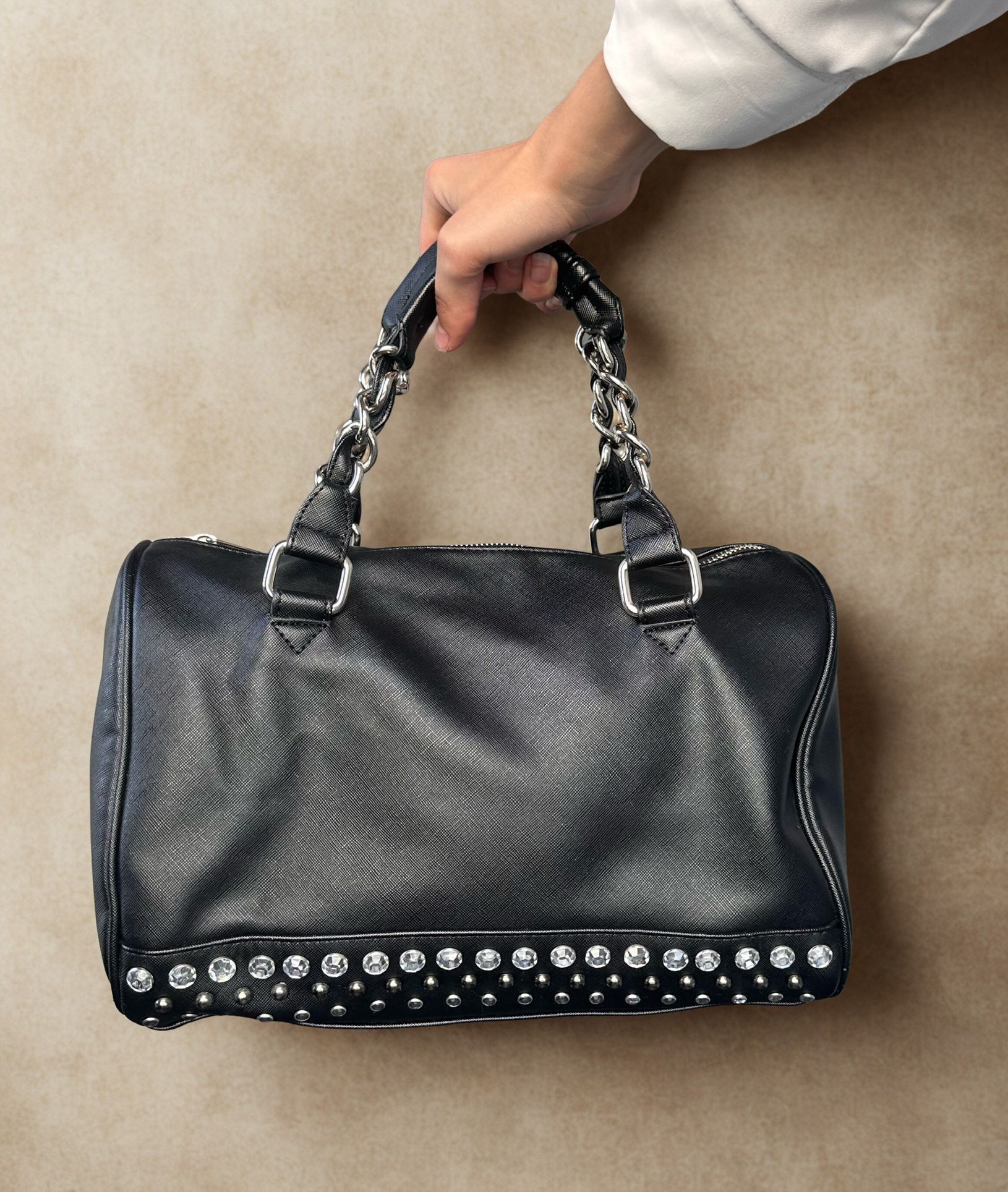 Chic and versatile Express black satchel featuring elegant silver chain detailing on the handles. This bag adds a touch of sophistication to both casual and dressy outfits. 💎Brand: Express 💎Color: Black 💎Style: Satchel / Shoulder Bag 💎Detail: Silver chain accents, dual handles 💎Size: Approx. 12” x 8” 💎Condition: like new Perfect size for carrying your essentials while staying sleek and stylish. A great everyday or evening bag!