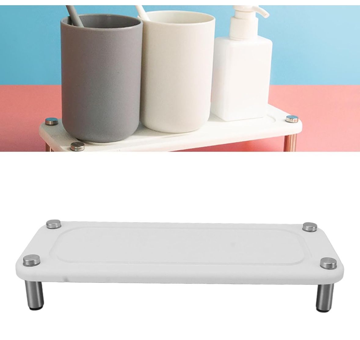 Sink Caddy Instant Dry Sink Organizer Dries Instantly Sink Holder Diatomaceous Pedestal Stand Riser with Stainless Steel Feet (White)