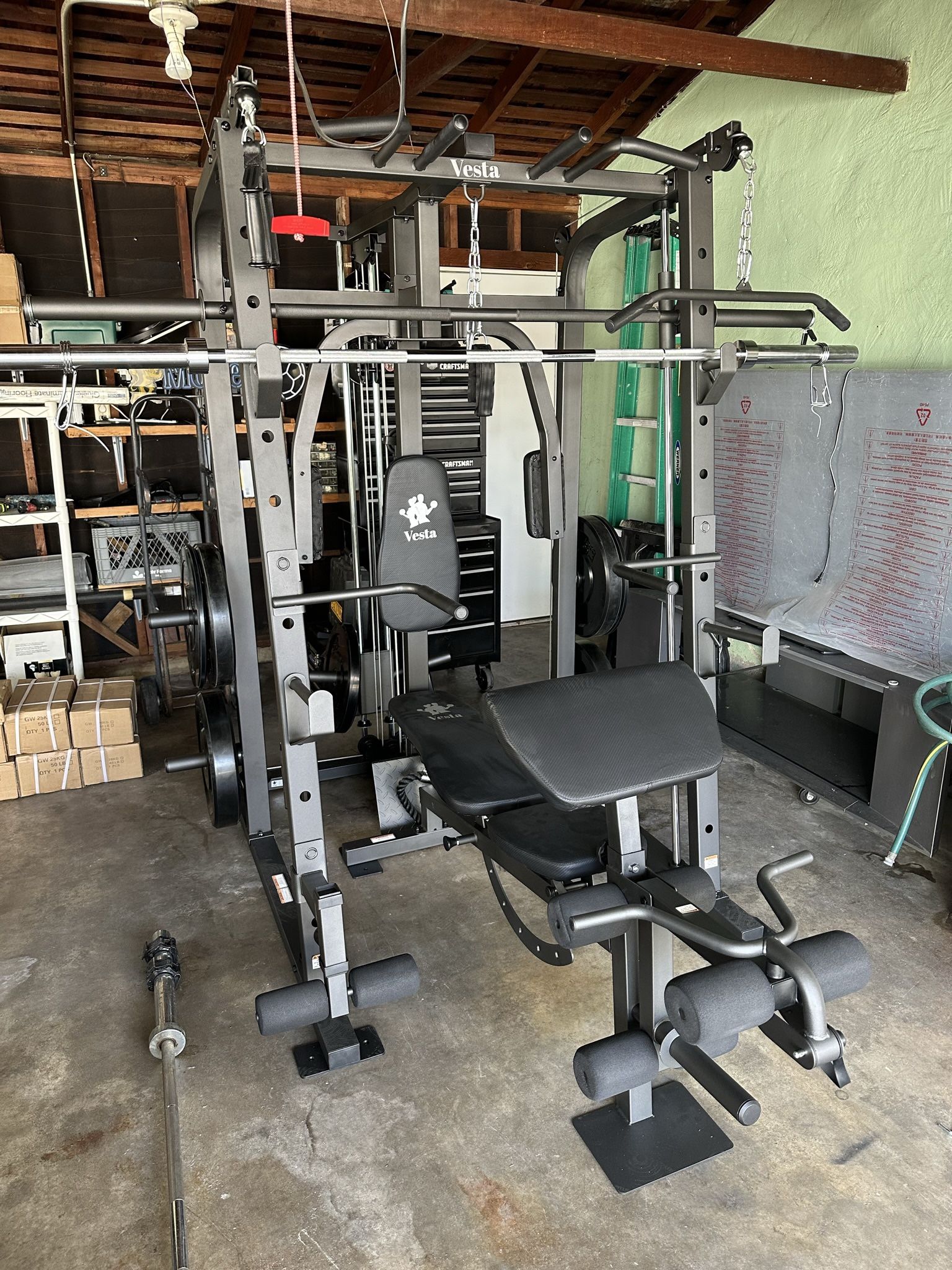 Vesta Fitness Smith Machine 1001 w/Bench Attachment | 245lb Cast Iron Olympic Weights | 7ft Olympic Bar | Fitness | Gym Equipment | FREE DELIVERY 🚚