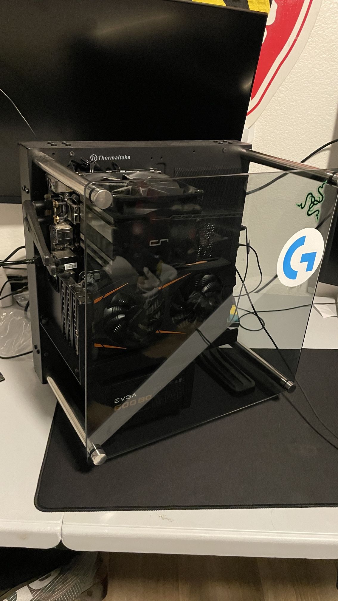 This PC comes with one monitor (75Hz), Blue Yeti Mic, Anne Pro 2 Keyboard, Logitech G502 Mouse, mousepad, and all cords needed. Pc specs: - i7 7700k -1060 ti open air case design anne pro 2 keyboard logitech g502 keyboard one monitor razer headphones all cables this pc will play most games at 80+ fps and some triple a titles at 60 fps. selling quick so dont be afraid to offer! if