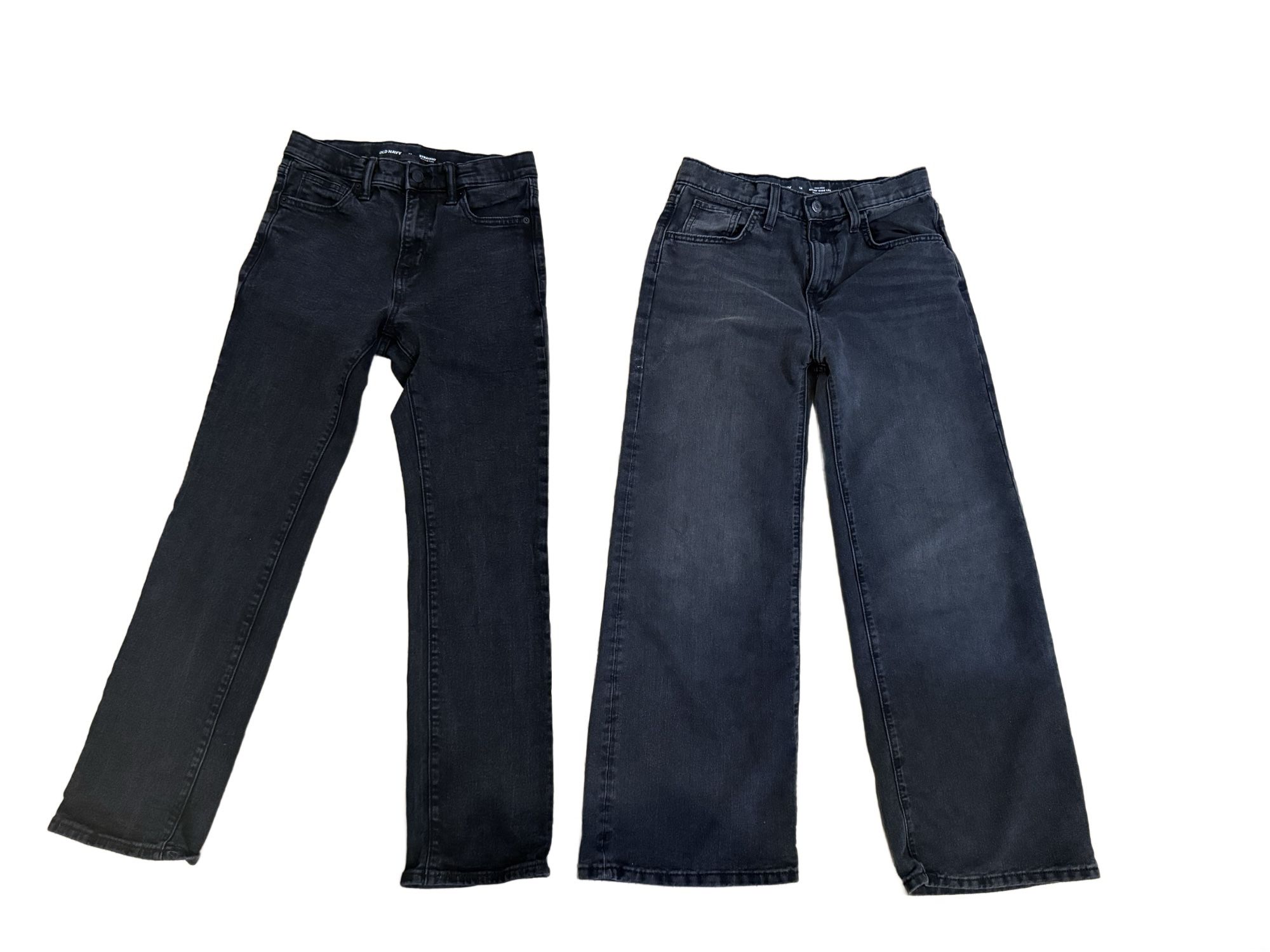 Set of two jeans in black and blue. Perfect for casual wear. Includes the 2 shown - both Old Navy ( size 14). Both have adjustable bands One is baggy wide & the other is straight All in good condition.