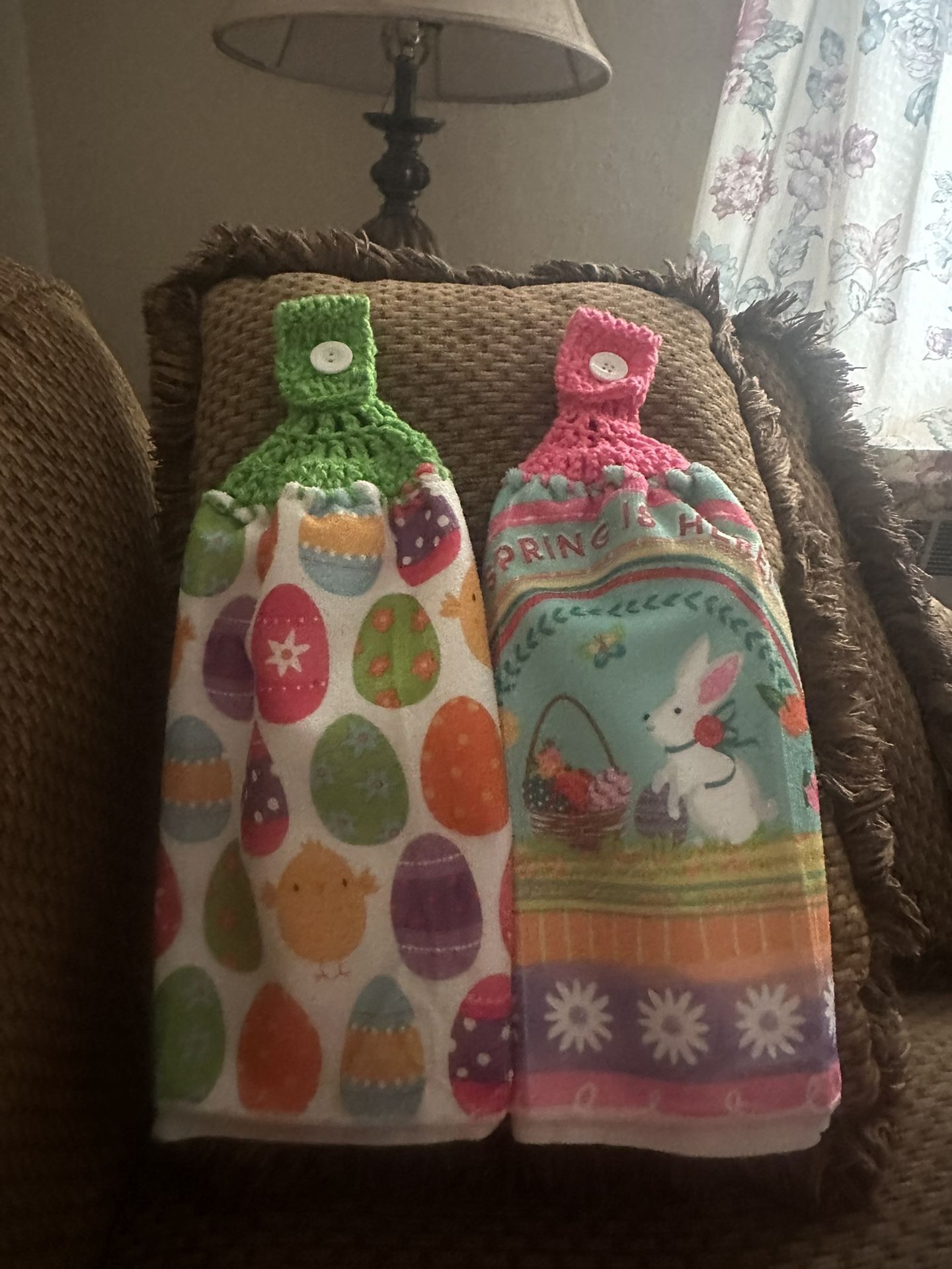 Handmade Easter towel on full towel makes nice deco or gift can hang on oven door kitchen cabinets or refrigerator smoke free home $6 each