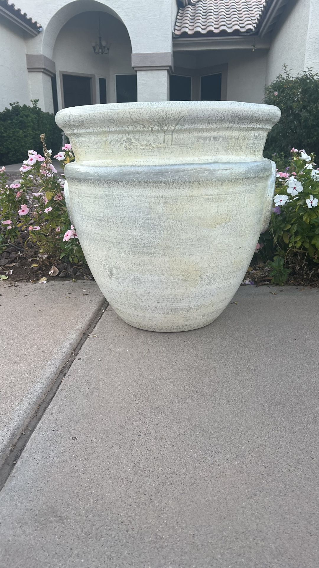 large clay planters. Measurements 21 1/2 inch W-20 inch H Delivery available Any question feel free to message me Maceta de Barro Entrega a Domicilio disponible Cualquier pregunta por favor déjeme un mensaje