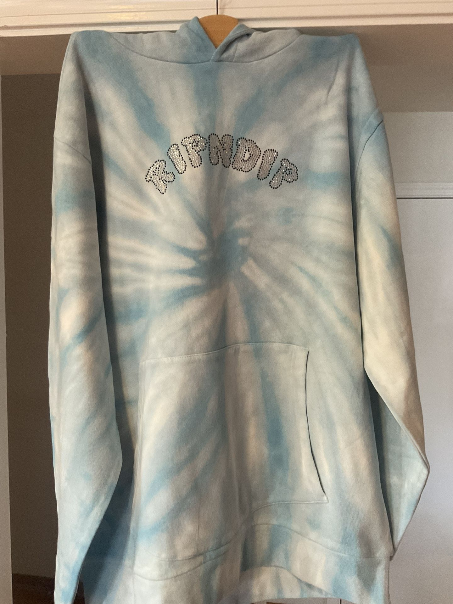 Rip N Dip Heaven Blue Tie Dye Hoodie Size Medium New With Tags - Bedazzled On Back.