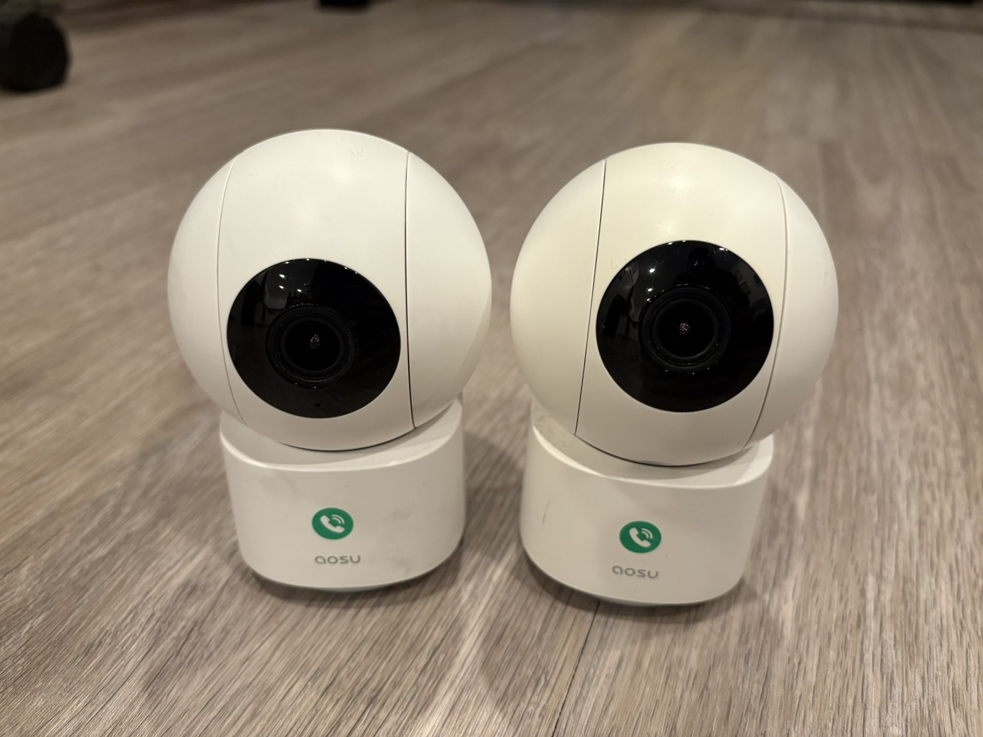 2-Pack of AosU 2K Indoor Security Cameras — ideal for home monitoring, baby/pet watching, and smart alerts! These were purchased in late 2024 and are in good working condition. Key features: - 2K high-resolution video — crisp detail day and night - Smart motion tracking & alerts — follows movement & notifies you - IR night vision — clear monitoring in low light - One-touch call / two-way audio — talk through the camera - Works with Alexa - Mobile app control — view/live feed & settings from your phone - Easy setup — Wi-Fi connected Condition: - Fully functional — tested and works as expected - No major cosmetic damage - Includes original cameras and power adapters - Selling because no longer needed