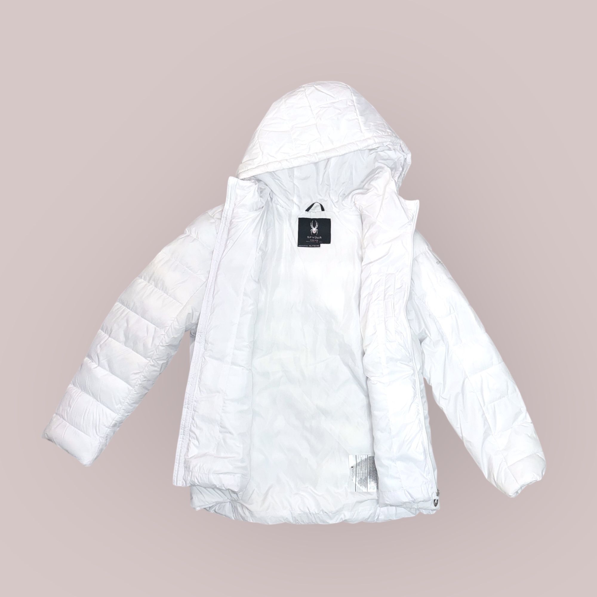 Condition: New with tags Brand: Spyder Name: Spyder Women's Clara Short Puffer Hooded Full Zip Jacket Model: SPFFM025-100 Size: XL Color: White