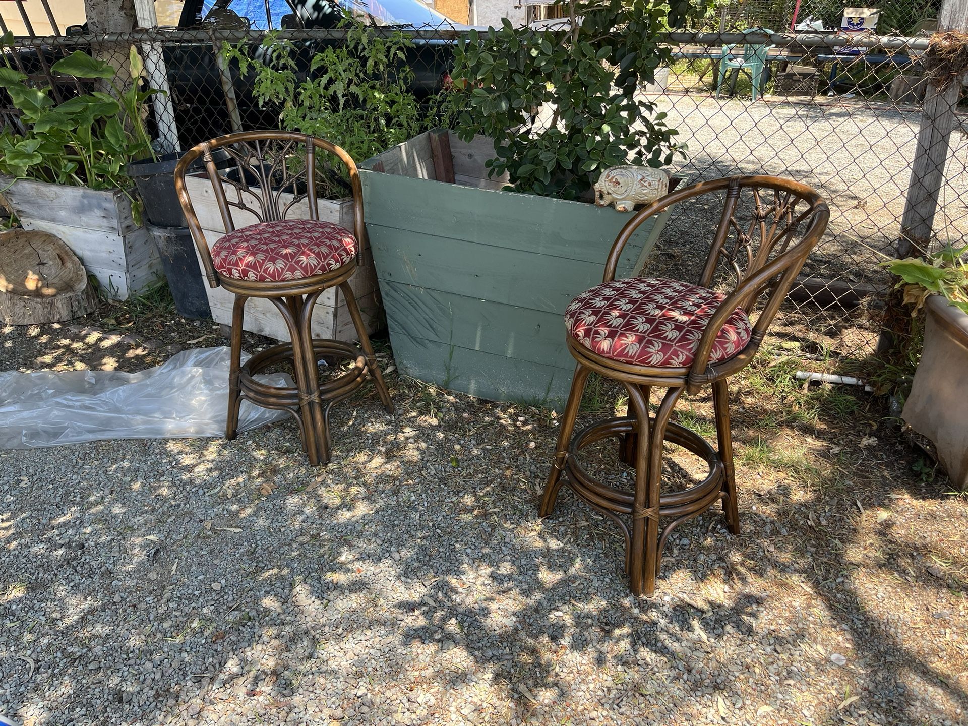 Bamboo barstools in good condition measurement are 24 inches tall by 16 inches radius seat everything must go check my other items, please $80 per both