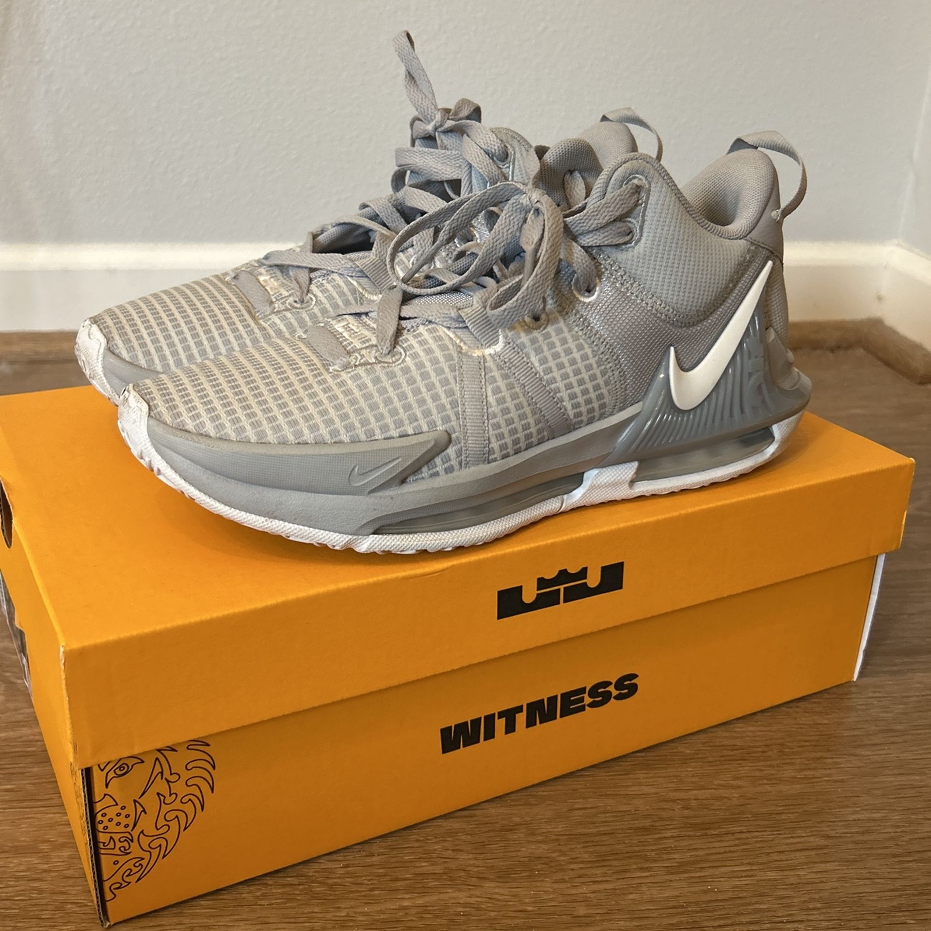 Lightly used wolf grey LeBron witnesses. These are very comfortable court shoes that can be used for basketball or volleyball. Used for about a month. Unisex shoes, size 7.5 men’s or 9 women’s.