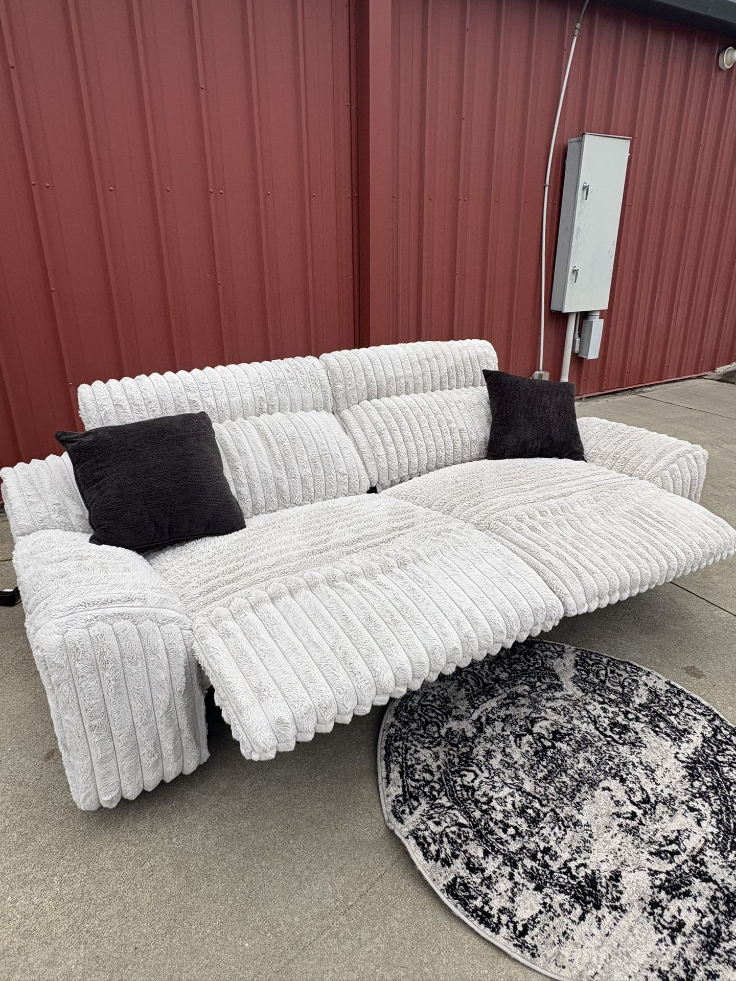 White reclining corduroy sofa, professionally cleaned and sanitized, FREE DELIVERY and setup in Columbia and Lexington area