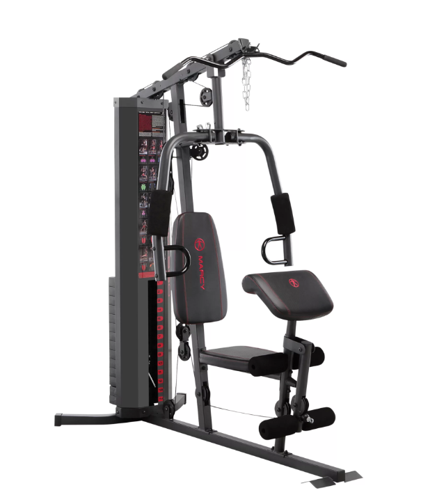 This 2025 Marcy 150lb Stack Home Gym is a versatile all-in-one combo Smith Machine, incorporating Smith bar functionality, cable systems, and a power rack. In like-new condition, it has been used for only one year, showing minimal signs of wear. The machine comes fully equipped with a variety of accessories, including a lat pulldown attachment, low row/seated row cable attachment, weight plate holders, dual action arm press with independent motion, upper pulley for abs, foam roller pads for chest and pec fly exercises, total leg foam roller pads, and a removable preacher curl and bicep pad, all complemented by a weight stack with lock. No assembly is required, and there are no reported issues, making this an excellent choice for immediate use in a home gym setup.\n\nFeaturing a robust design, this Marcy Smith Machine supports a weight capacity of up to 150 lbs, ensuring durability for a range of exercises. Its dimensions are 42 inches in width, 68 inches in height, and 78 inches in depth, fitting comfortably in most home gym spaces. Safety and adjustment features include adjustable safety stops, lock-out catches, and a counter-balance mechanism to enhance user security during workouts. The all-in-one design offers multiple workout options, from Smith bar exercises to cable-based movements, catering to a full-body training regimen.\n\nAdditional highlights of this model include its comprehensive accessory package, which maximizes workout versatility. Whether focusing on strength training, muscle isolation, or endurance, this machine provides the tools needed for a complete fitness experience. Buyers will appreciate the thoughtful design elements, such as the foam roller pads and independent motion arm press, which add comfort and flexibility to every session.