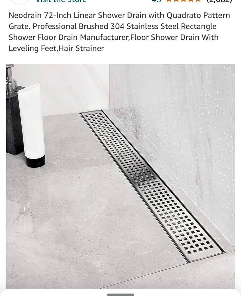 Linear drain stainless color. Removable grate. Brand new open box Half price of retail. Brand new. Open box