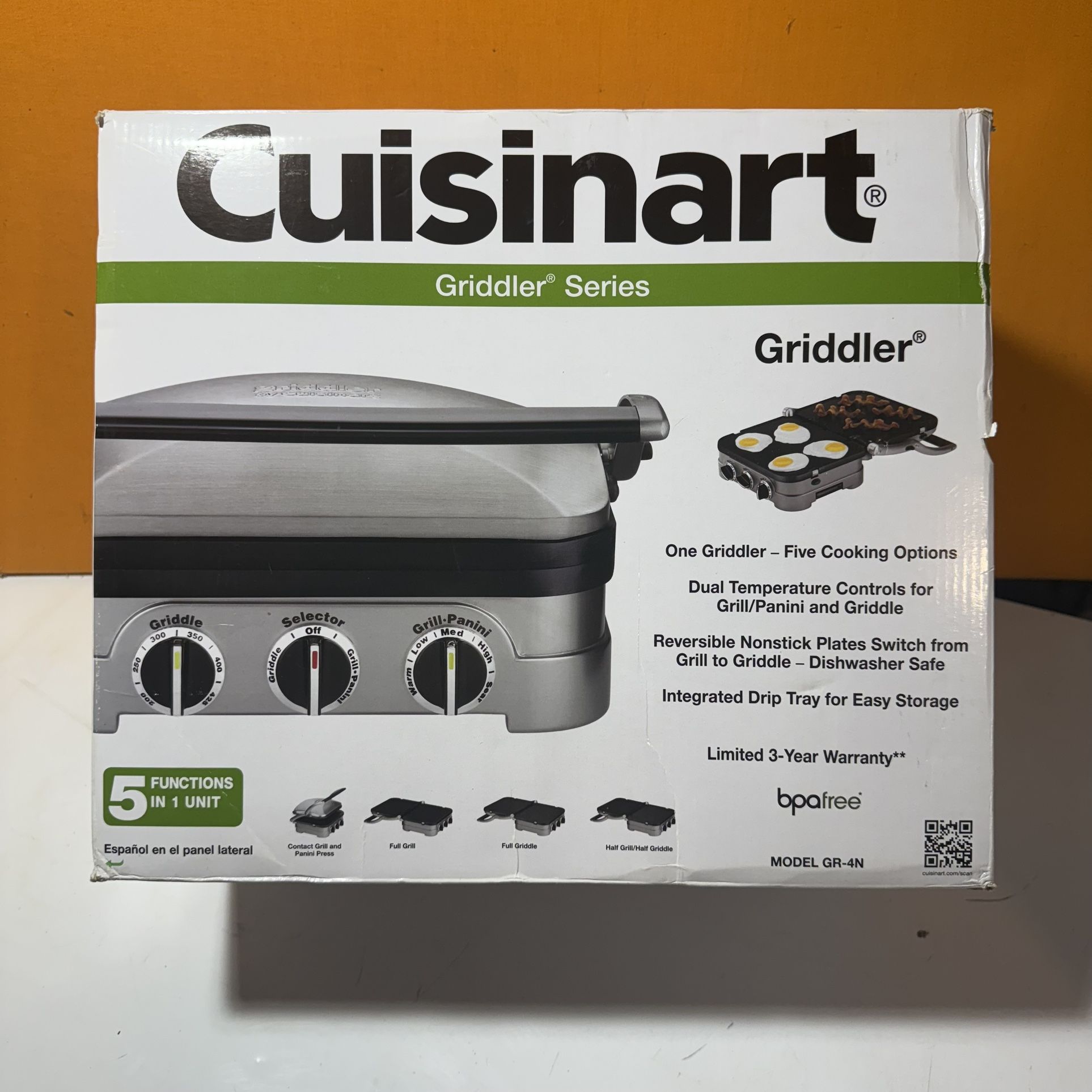 Versatile and easy-to-use Cuisinart Griddler .This popular 5-in-1 countertop appliance works as a contact grill, panini press, full grill, full griddle, and half grill/half griddle. Perfect for cooking burgers, steaks, eggs, pancakes, sandwiches, and more. Features: • Dual temperature controls for precise cooking • Reversible nonstick plates (grill & griddle) • Dishwasher-safe removable plates • Integrated drip tray for easy cleanup • Compact countertop design Great for home kitchens, dorms, RVs, or small spaces.