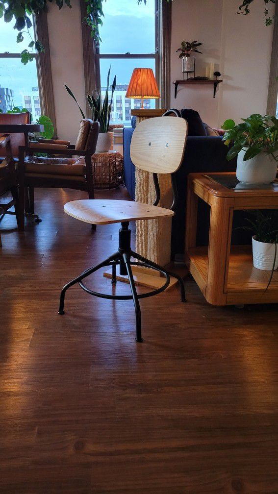 Ikea Pine Wood Drafting Chair Kullaberg - Vintage Mcm Style